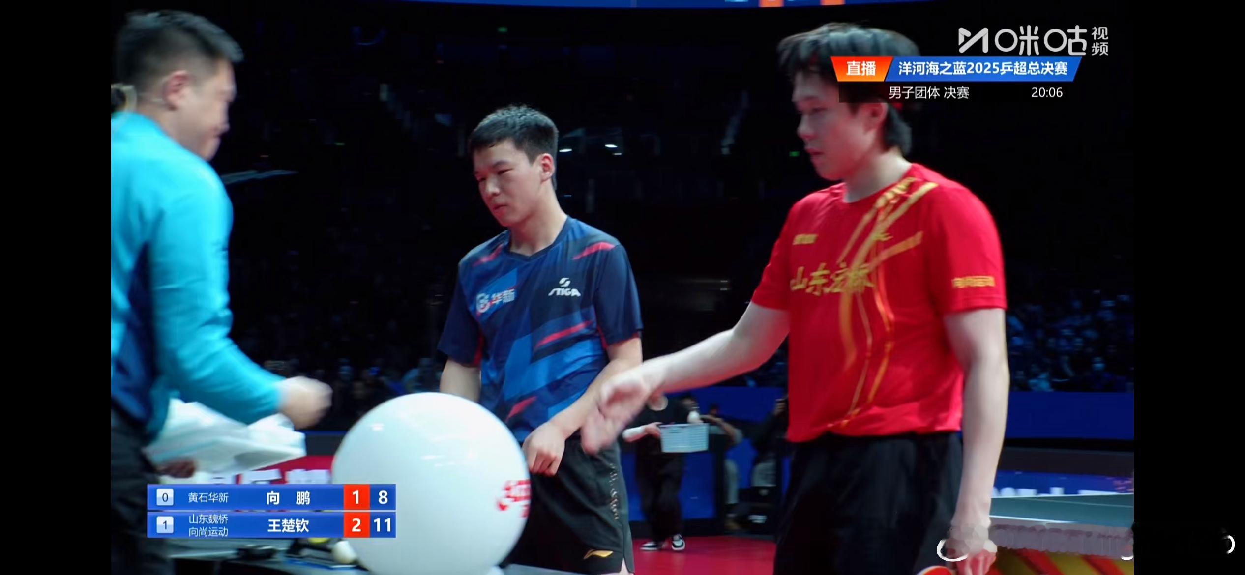 黄石华新vs山东魏桥山东魏桥2比0黄石华新王楚钦3比1向鹏(11:7,7:11,11:7,11:8)
