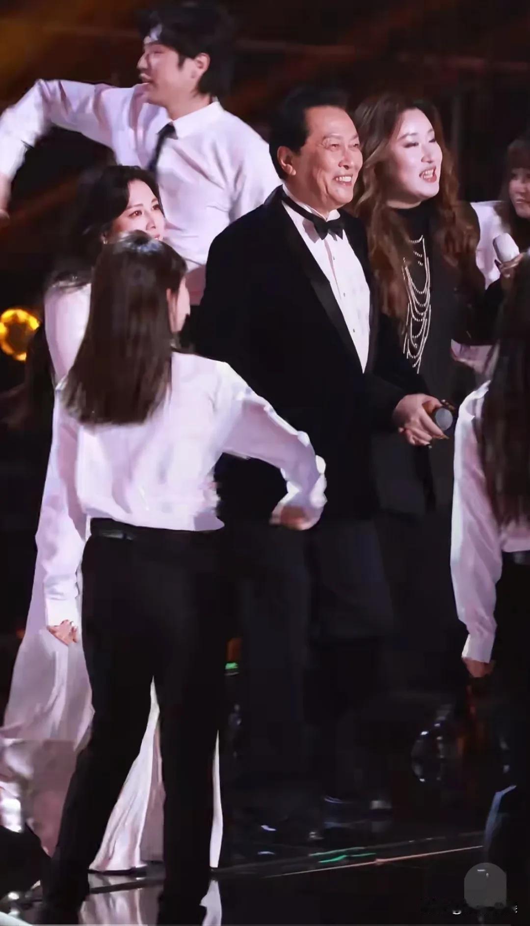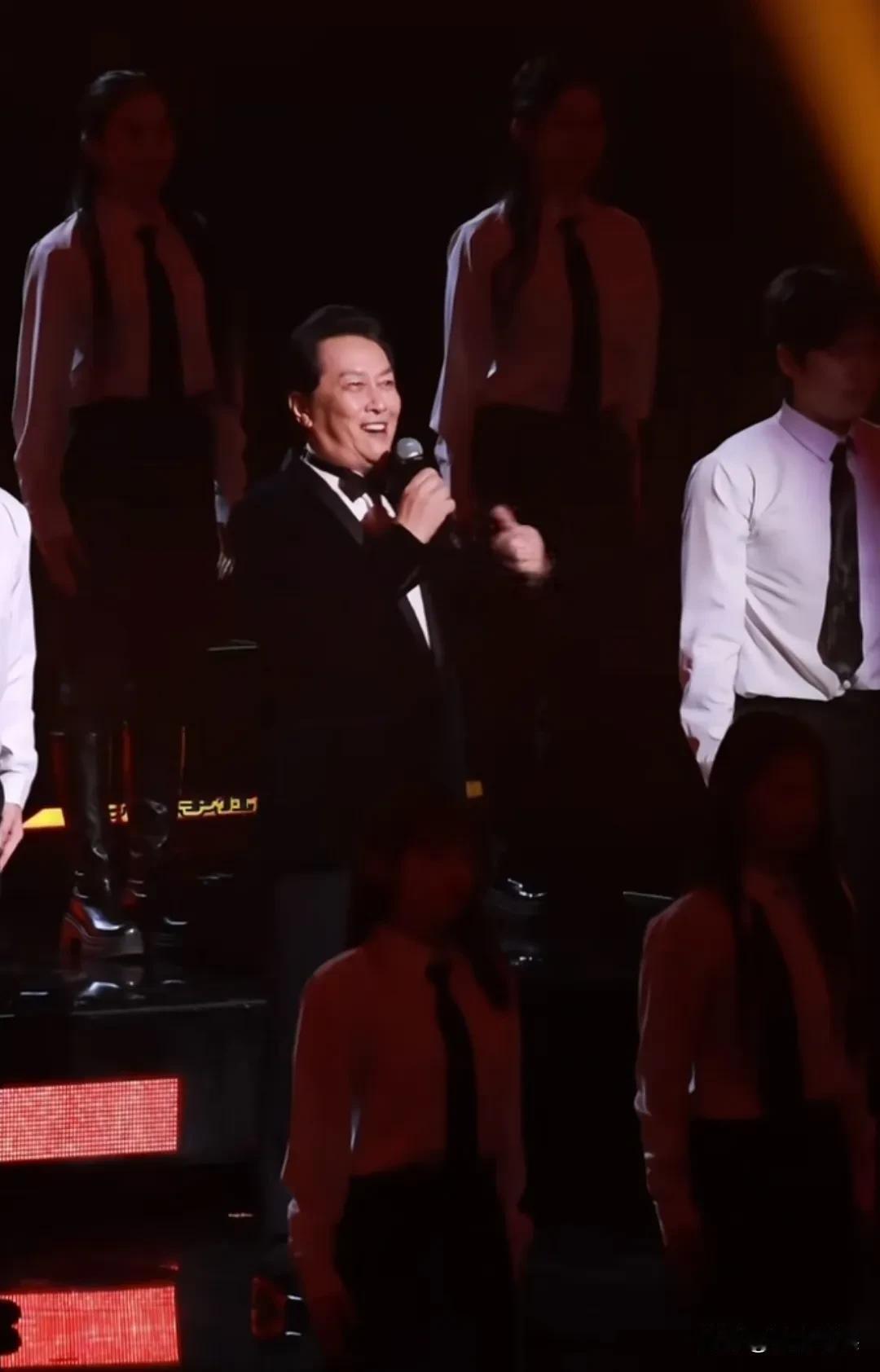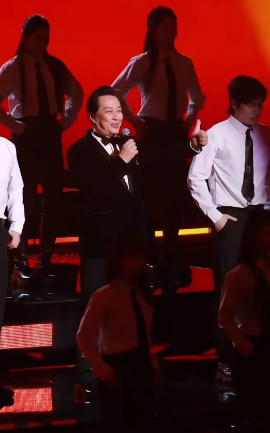 唐国强不愧是最早版的“奶油小生”,哪怕现在七十几岁了,站在一群年轻的奶油小生中,气度也不逊色。 他参加“抖音惊喜美好夜”活动,梳着大背头,穿着西装,戴着领结,身材板正,气宇轩昂。 不论是唱歌,朗诵,扫腿舞还是比心,样样信手拈来,身段灵活,反应灵敏,脸色红润,中气十足,不像老一辈的演员,更像是内娱“新晋小生”。 咱不得不夸一句,唐国强这学习能力是真强,从影视剧演员到综艺咖,转场也太丝滑了。 老一辈明星中有这活力的,也只有刘晓庆和他了![赞]