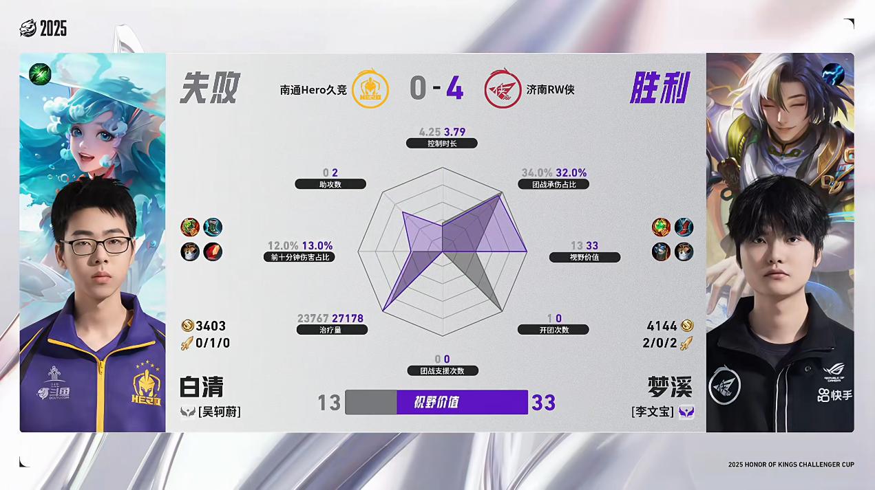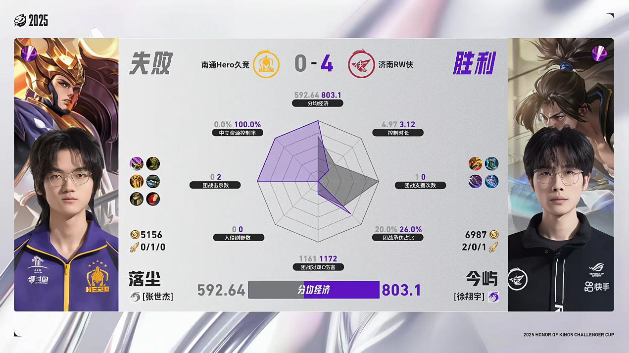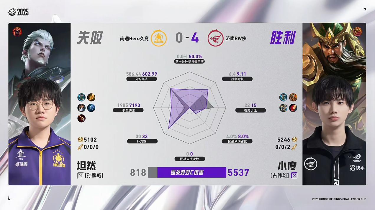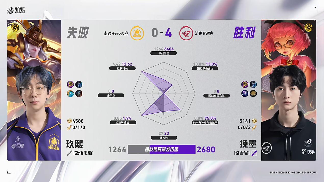 RW/Hero第4局数据对比:挽墨安琪拉几乎包围玖熙女娲