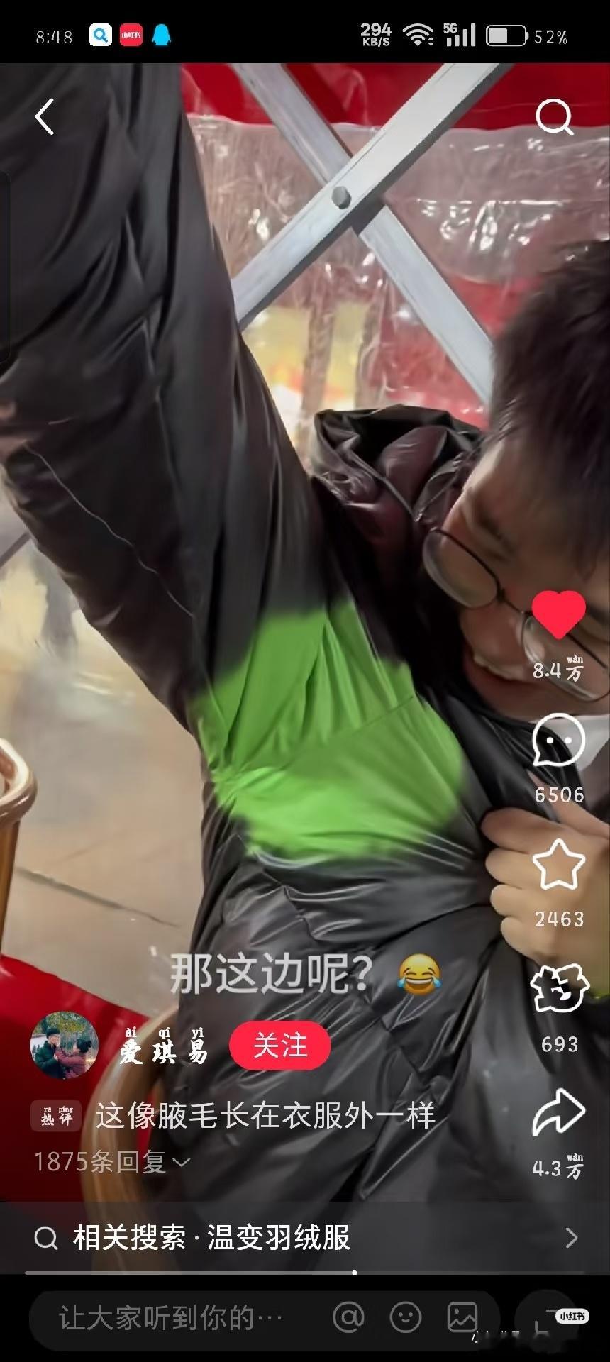 最后只有腋下是绿的这类变色衣多为温度感应材质,腋下易积汗升温,是全身温度最高的部位之一,会出现“只染腋下”的专属效果。其实我觉得,柔性显示屏也许会是未来面料的解决方案 发热 变色 两全其美给孩子买了一件会变色的衣服