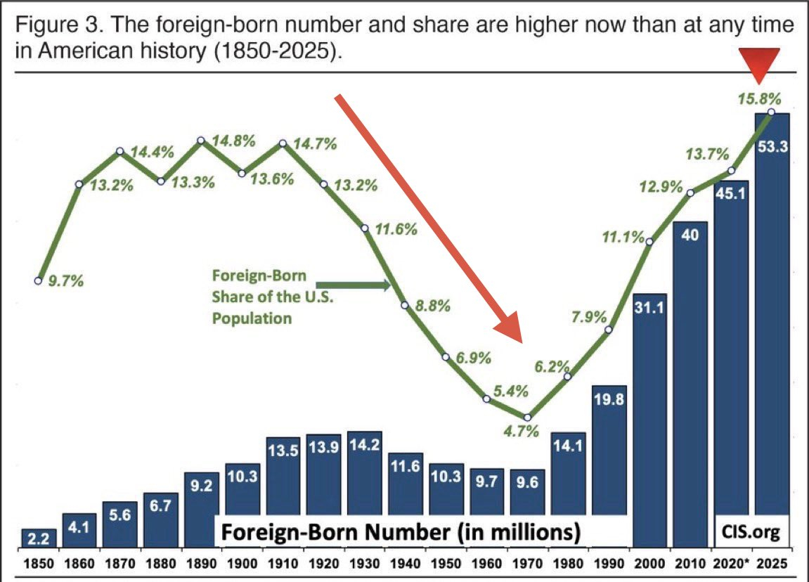 1920 至 1970 年间,美国曾对移民实施过严格限制。在这五十年里,美国打赢了一场世界大战,崛起为全球经济与军事超级大国,缔造了繁荣的经济,催生出壮大的中产阶级~~~~~~~~~~~~八十年代以后就发生了变化,不知道什么原因导致了这种变化?