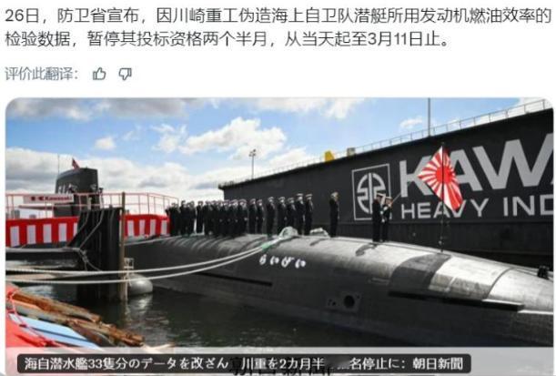 12月26日,日本防卫省对川崎重工作出“停止参与招标2.5个月”的处分,期限一直到次年3月11日,这次处分并非突然作出,背后是川崎重工一系列违规行为被查实的结果。 就在处分公布的同一天,川崎重工发布了一份补充报告,承认了自己篡改船舶用发动机测试数据的问题,其中还包括为日本海上自卫队制造的潜艇发动机,相关的燃油效率数据也被篡改过。 其实早在之前,川崎重工就因为类似的船舶用发动机数据篡改问题被曝光过,这次的补充报告相当于进一步查实了其违规行为的范围,连军工相关的潜艇发动机也未能幸免。 值得注意的是,调查中还发现,川崎重工通过虚假交易设立了小金库,用这些资金购买了不少物品赠送给海上自卫队的相关人员,这些物品和潜艇的正常运行没有任何关系。 针对这一情况,防卫省不仅处分了川崎重工,还对11名收受礼品的海上自卫队人员作出了相应处分,包括停职和减薪等。 防卫省表示,经过核查,川崎重工篡改数据的行为并没有影响到潜艇的安全和正常性能。 而川崎重工方面也作出回应,对屡次违反规章制度带来的不良影响表达了歉意,并表示会采取相应措施,防止类似的不当行为再次发生。 这次处分事件也引发了外界对日本制造业的关注,近年来日本多家知名企业都先后曝出数据造假等违规丑闻,让原本备受认可的“日本制造”口碑受到了不小的冲击。 川崎重工作为日本重要的重工企业,长期参与防卫省的各类装备采购项目,此次被暂停招标资格,也给相关的装备采购流程带来了一定的影响。 以上都是个人观点,对此您有什么不同的看法,可以在评论区留言讨论!!!