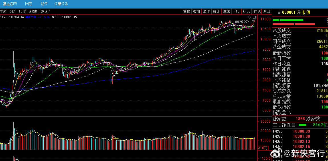 目前A股总市值已经到109万亿了,2024年的GDP总值是134.81万亿,A股总市值已经占到上年GDP总量的80%多,A股总市值再涨25万亿左右,将超过GDP的总量,这是历史从没有过的。