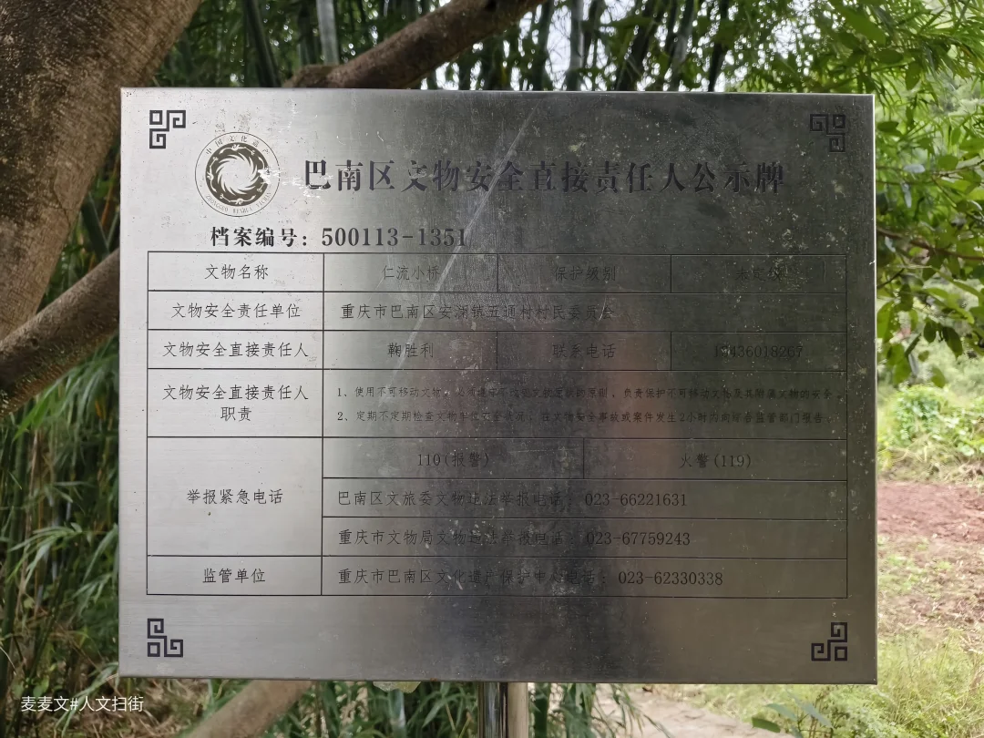 重庆市巴南区安澜镇仁流老街尽头不远处,还藏着一座清代石拱桥——仁流小桥。青石板垒成的桥身爬满青苔,几孔石拱跨着潺潺溪流,数百年的风雨在石纹里刻下斑驳。 桥面虽被补了水泥,却掩不住古桥的质朴。桥头的文物公示牌,标记着它的文保身份,也让这份乡野的古意多了层守护。站在桥上,两岸竹林蓊郁,远处农舍错落,远山如黛,清代的造桥技艺,就这般融在乡居日常里。 如今它不再是要道,却仍是村民闲谈、孩童嬉闹的去处。仁流小桥和仁厚桥这两座古桥,就像位缄默的老者,把清代的风、乡间的烟火,都妥帖收进了石拱的弧度里。