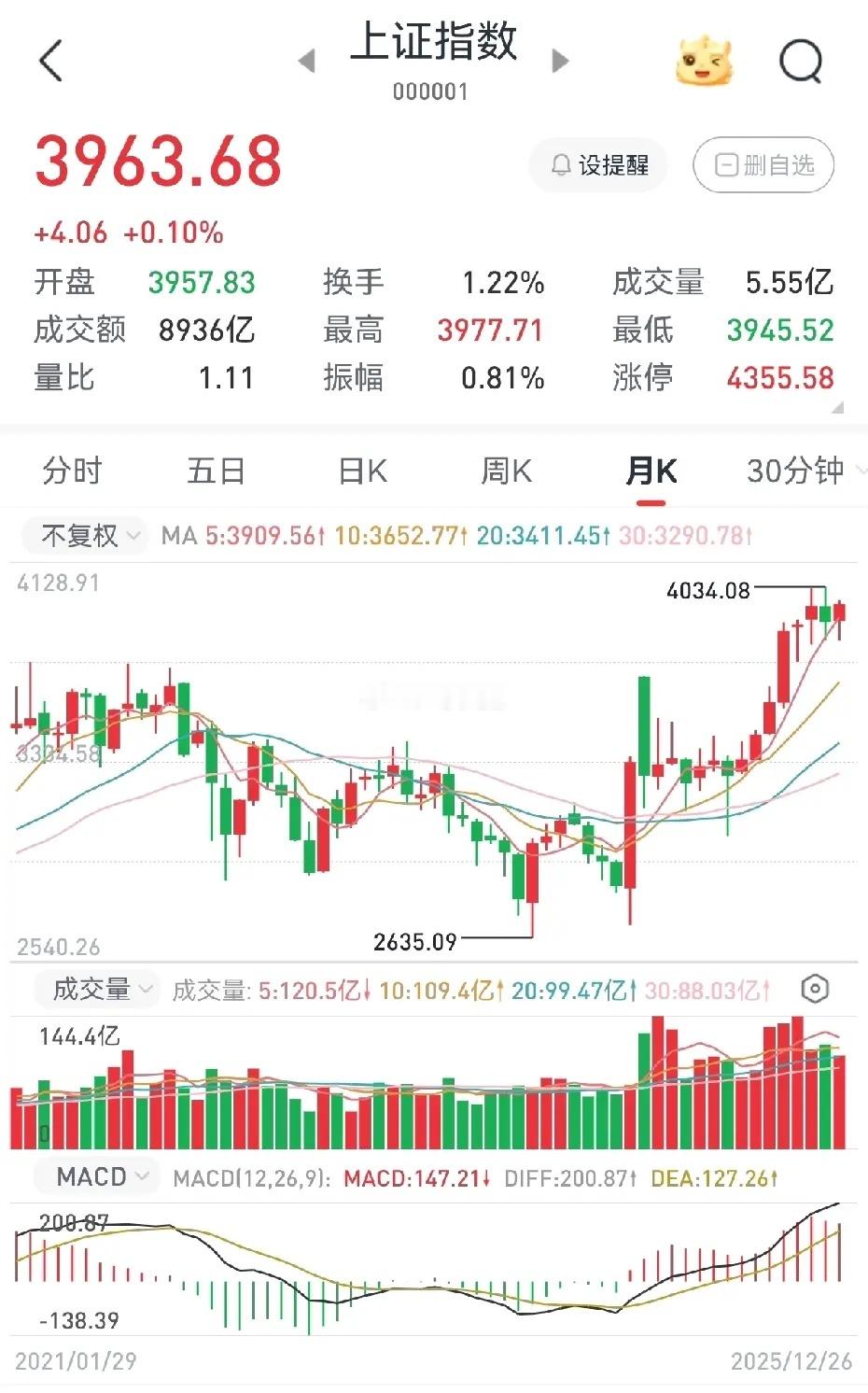 下周大盘收官走势会怎样?我已有九天未更新内容了。这段时间不少粉丝催我更新,我自己也十分想更新,可实在没勇气,只因16日我出现了严重的判断失误。停更的这九天,我一直在反思:16日拉出的阴线,从技术层面看,大盘会进行C浪调整,调整目标位至少会到3732点。可17日大盘却实现反包,且一路连阳,截至本周五,大盘已连拉八根阳线,这着实让我难堪。由此可见,我的技术分析在市场意志面前如此不堪一击。明日,A股即将开盘。由于下周是2025年的收官之战,且仅有三个交易日,那么下周大盘会如何收官呢?我觉得下周大盘依旧会震荡上行,不排除收出九连阳甚至十连阳的情况,大盘指数很可能会站上4000点。简言之,下周大盘指数无需担忧。为何会得出此结论?从管理层意图分析,显然是要巩固A股向上、向好的局面,不愿让A股从3040点涨至4034点的成果打折扣。2025年,大盘指数以3347点开盘,若以4000点收官,年度涨幅还不到20%。然而在2025年,管理层出台诸多刺激股市上行的政策,不到20%的涨幅在这些政策面前不算多。再从技术层面分析,大盘17日的反包,显然是国家队出手所致。之后的八连阳也是在修复投资者情绪、提振投资者信心。虽然在日K线上,周五大盘有放量滞涨的迹象,但从技术面服从政策面的角度分析,我认为下周大盘的三个交易日不太可能出现长阴下杀的情况,反而会缓慢上扬,让大家开开心心迎接2026年。从周K线来看,本周周K线是根放量中阳线,所以下周周K线很可能是根小阳线或阳十字星。从月K线来看,截至本周五大盘上涨了1.93%,即便下周大盘调整,月K线收阳也板上钉钉。总之,下周大盘指数继续收阳的概率较大。但操作上,不可盲目激进,以多看少动平稳过渡为宜。毕竟指数已连拉八根阳线,不可能天天上涨,总有回调之时。以上为个人观点,仅供参考。