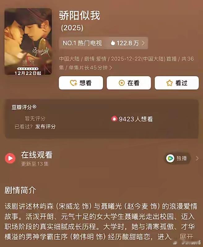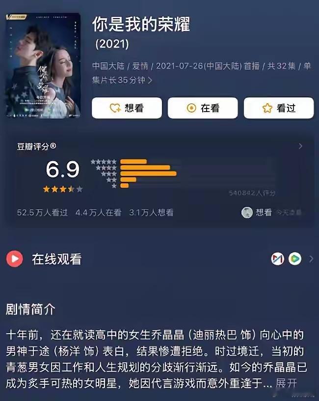 顾漫五部现偶的成绩豆瓣评分最高的是2014年赵丽颖的《杉杉来了》,还是当年江苏卫视收视年冠,2015年大爆现偶是唐嫣的《何以笙箫默》,2016年《微微一笑很倾城》让杨洋和爽成为大顶流,2021年的《你是我的荣耀》集均6000多万,是近五年集均第一的现偶,估计《骄阳似我》全方位都出不了突出成绩