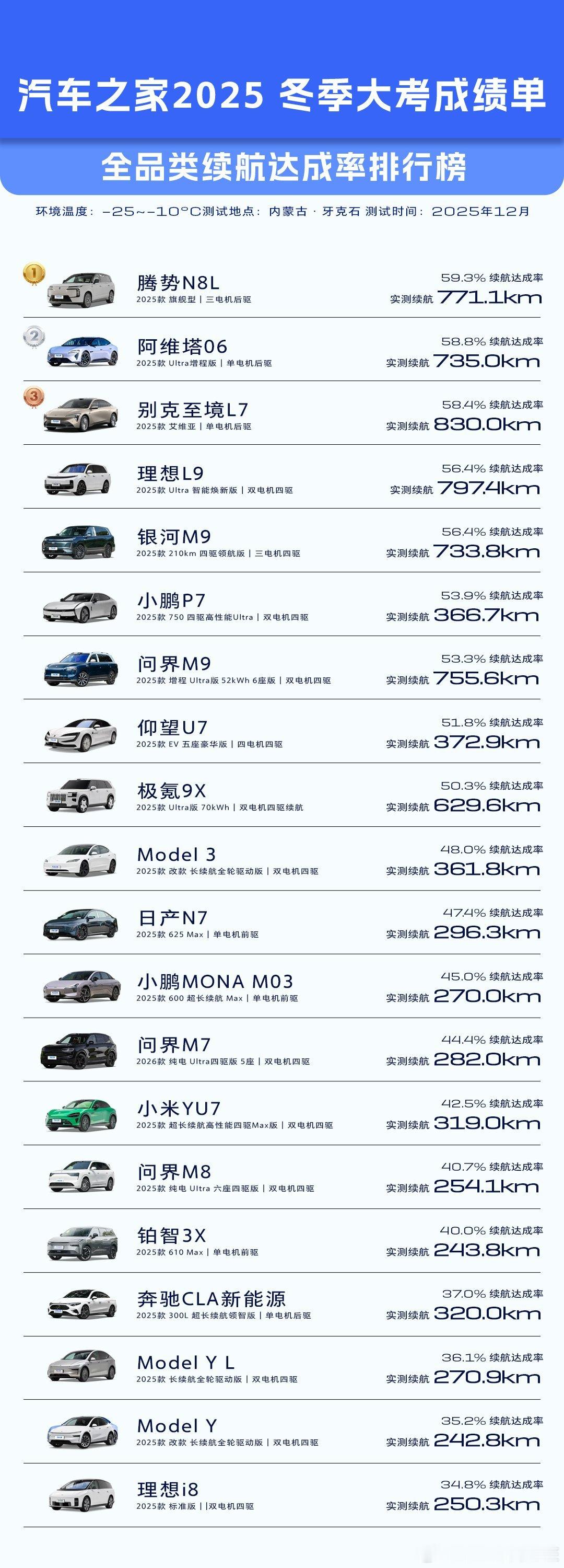 看了汽车之家2025冬测成绩,新能源车续航达成率前五竟然有四款车型都是增程,这点比较惊讶,最没想到的是其中一款竟然是合资品牌,别克至境L7,这台车上市出价格我就知道,别克的转变是非常彻底,且最把国人当回事的合资品牌,从平台来看,任何合资进口品牌不给这个价位给我们双叉臂,优秀的底盘调教,纯正的新能源平台,研发多款车型,我就知道,别克成了,所以别克至境L7实测续航达成率在全品类车型中排名TOP3;制热效率居混动轿车TOP1,并不惊讶,就是实属名归,认真造车的结果,我相信随着自主品牌崛起,更多的合资品牌会像别克一样,给我们尊重,把好的技术用在价格实惠的车型上!别克至境L7