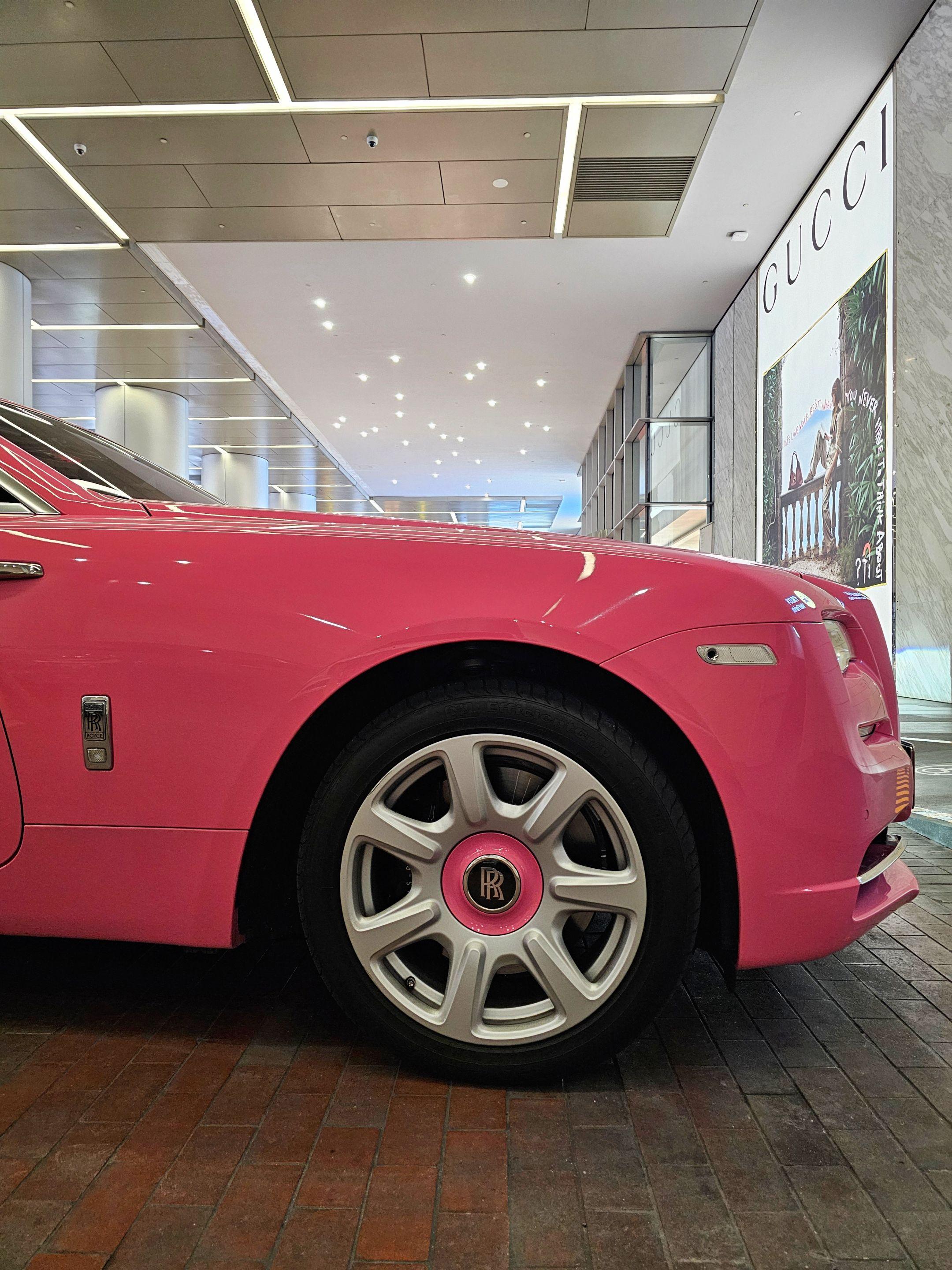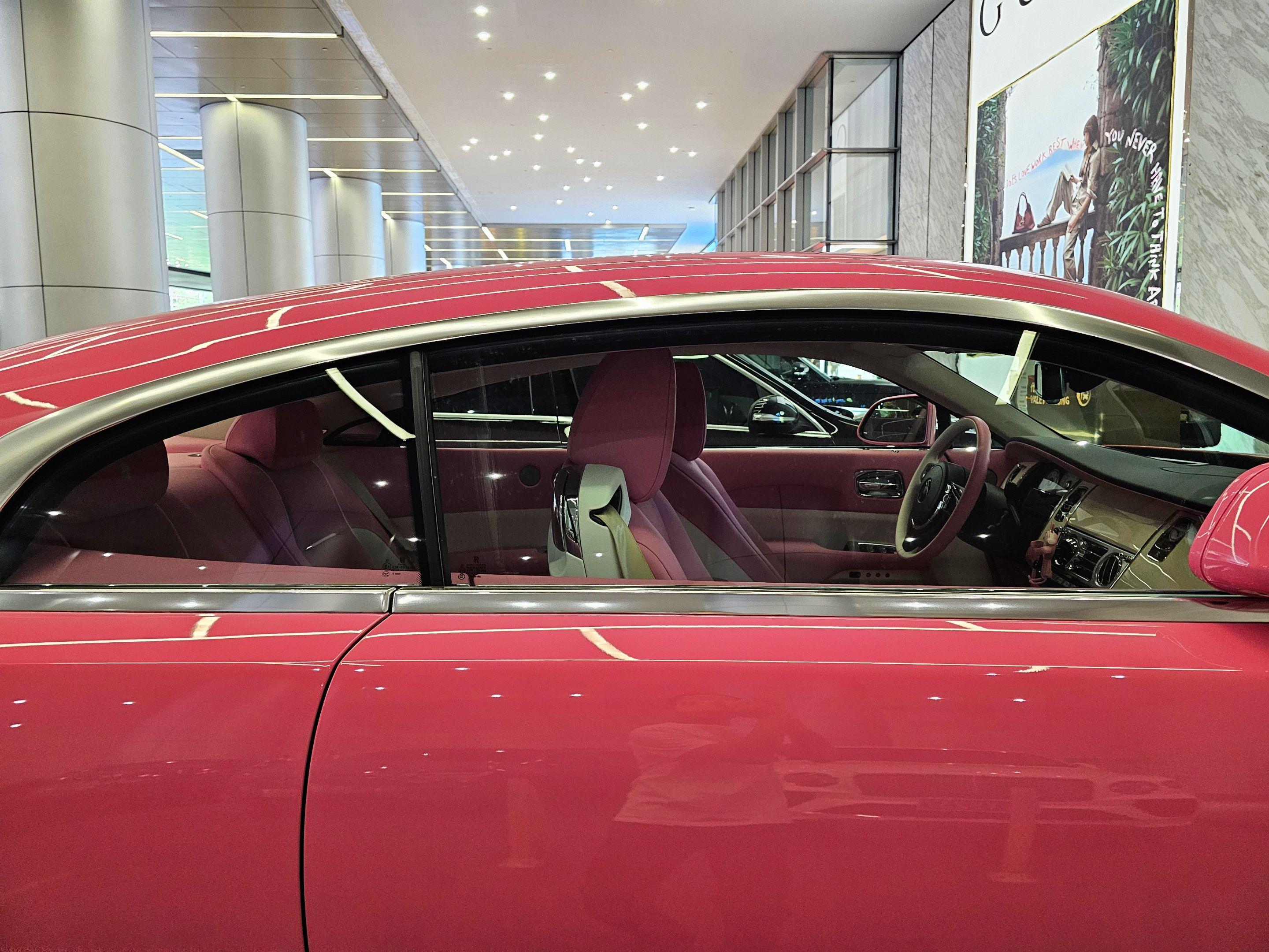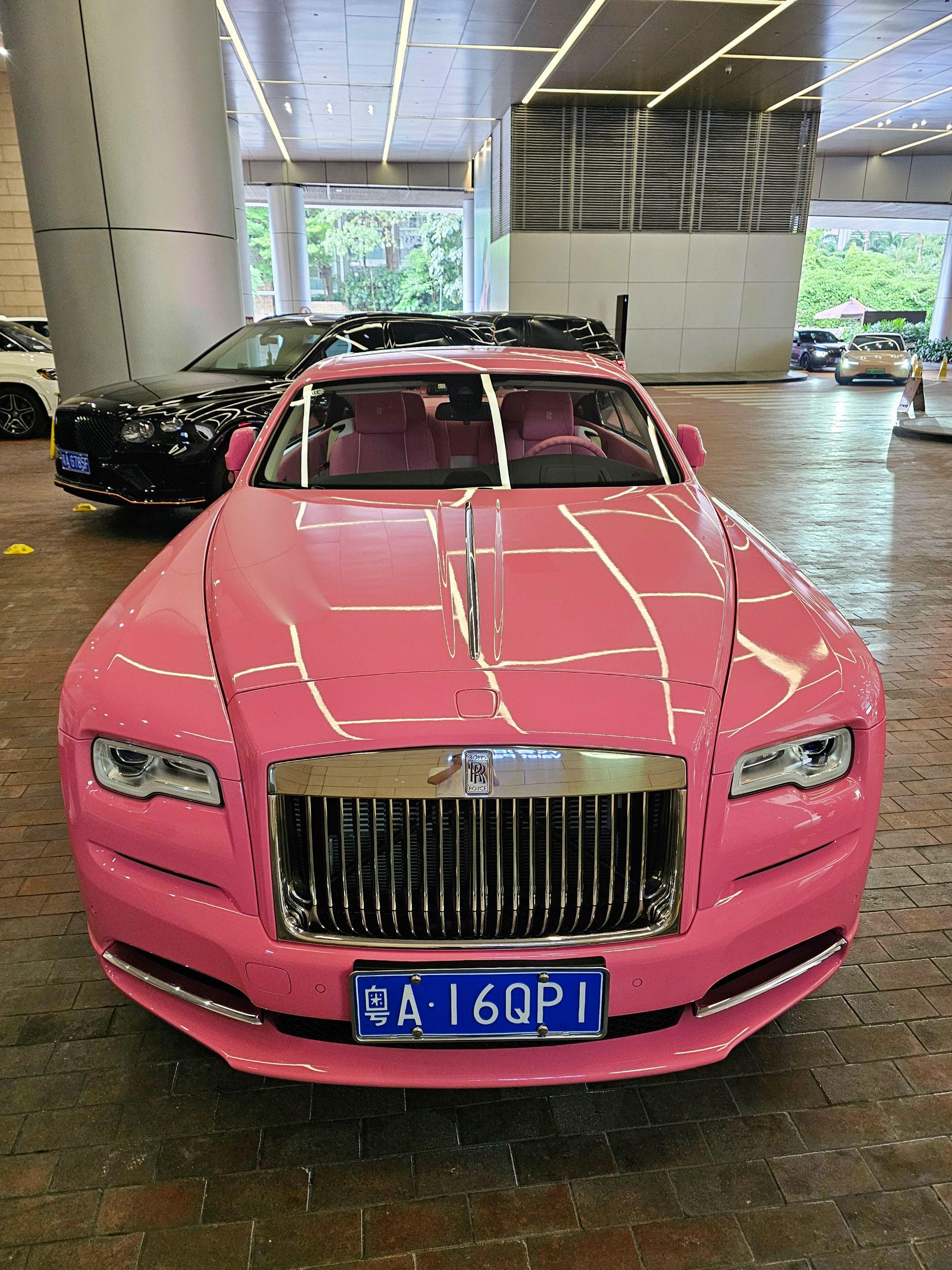 在广州太古汇偶遇富家小姐姐的粉色劳斯莱斯魅影,粉色的外观粉色的内饰座椅...