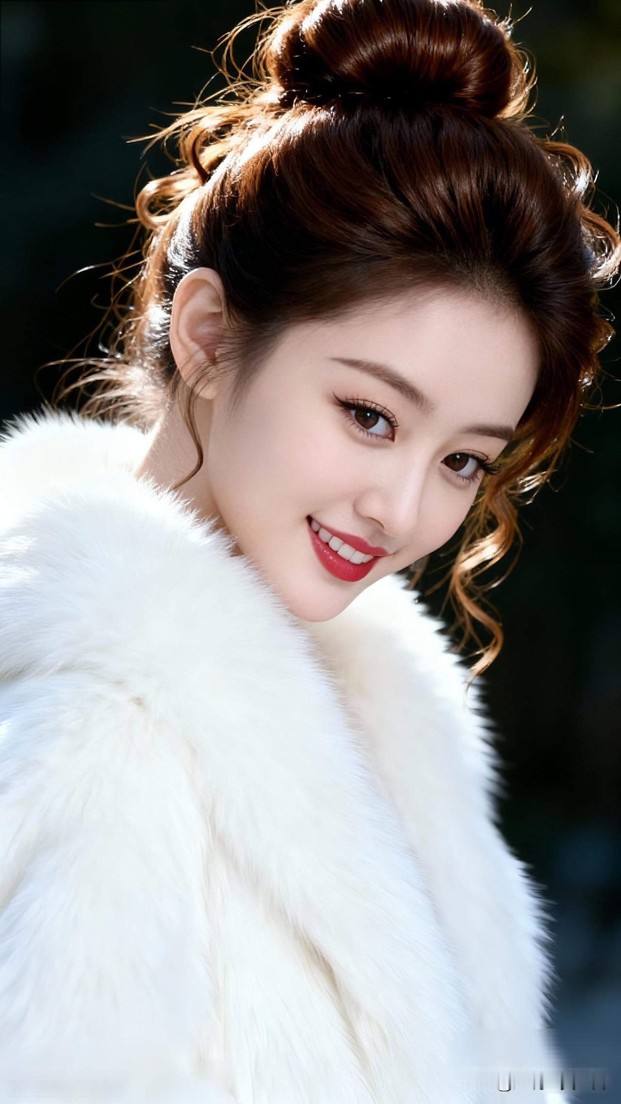 红妆美人笑,白衣似雪飘。哪里的美女具有温婉的气质 冬日暖阳下的甜美笑容,毛茸茸的白色外套,温柔动人。