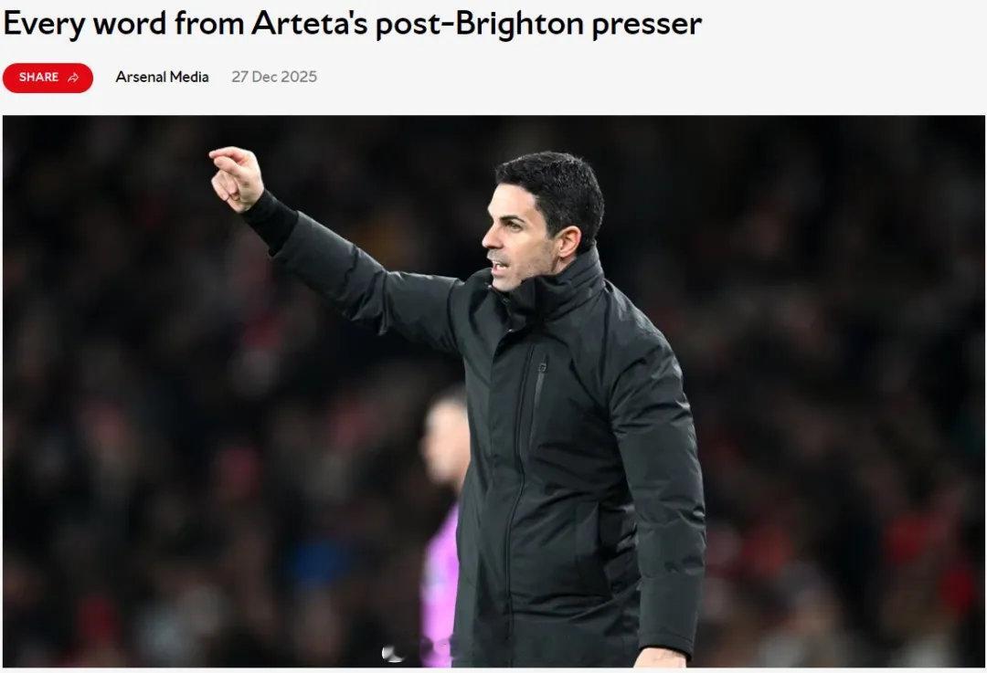 阿尔特塔出席了赛后新闻发布会,我们来看看阿森纳主帅的发言。谈谈你对这场比赛的看法吧:我对球队的表现非常满意,无论是个人层面还是团队层面我们都充满统治力,始终保持着威胁,所以我对这些非常满意,但差距本来应该更大的,看看我们创造的机会, 运动战机会,比分绝不应该是2-1。但这就是英超,我认为对手的第一次射门就进球了,然后拉亚还做出了神奇扑救保住了比分。我喜欢的一点是,球队有很多麻烦,但我们以很好的方式应对了这些问题,昨天我们失去了廷贝尔,今天我们又在热身时失去了卡拉菲奥里,赖斯不得不踢右后卫,而你们也看到了他的表现,这就是我们的精神。你是否认为伤病问题反而在促进整个球队的团结?是的,因为廷贝尔受伤了,他在落地时稍显笨拙,卡拉菲奥里也遇到了些问题,非常非常奇怪,但当你告诉赖斯他不得不踢右后卫时,他的回应是:“OK,接受挑战,我会拿出最好的表现”,看到这样的态度真是太棒了。你能谈谈热身时失去一名球员的情况吗?然后还有如何挑选一名新球员替代他的,这是恐慌性选择还是你对自己的B、C、D计划非常有信心?不是恐慌性的,我们早有准备,因为我们知道可能发生这种情况。所以当我公布首发阵容时,我总是告诉球员们“做好准备,因为这就是足球,这就是英超,任何事情都可能发生。”有人可能会不适,然后一小时后他无法坚持,那么你就必须做好精神准备立即上场拿出表现,而这就是我们的球员在做的。卡拉菲奥里到底是什么情况?他昨天就感觉到了这个问题,有些很“尴尬”(something very awkward ,我也不确定该怎么翻译这里)的事情发生了,而今天热身时他感觉不舒服。你刚才又提到差距本来应该更大的,在对水晶宫的比赛时你也这么说,对埃弗顿也是1球小胜,上次你们舒舒服服赢得比赛是在什么时候?在英超“舒舒服服”赢球,那可真是说大话。希望我完全用不到这个词。