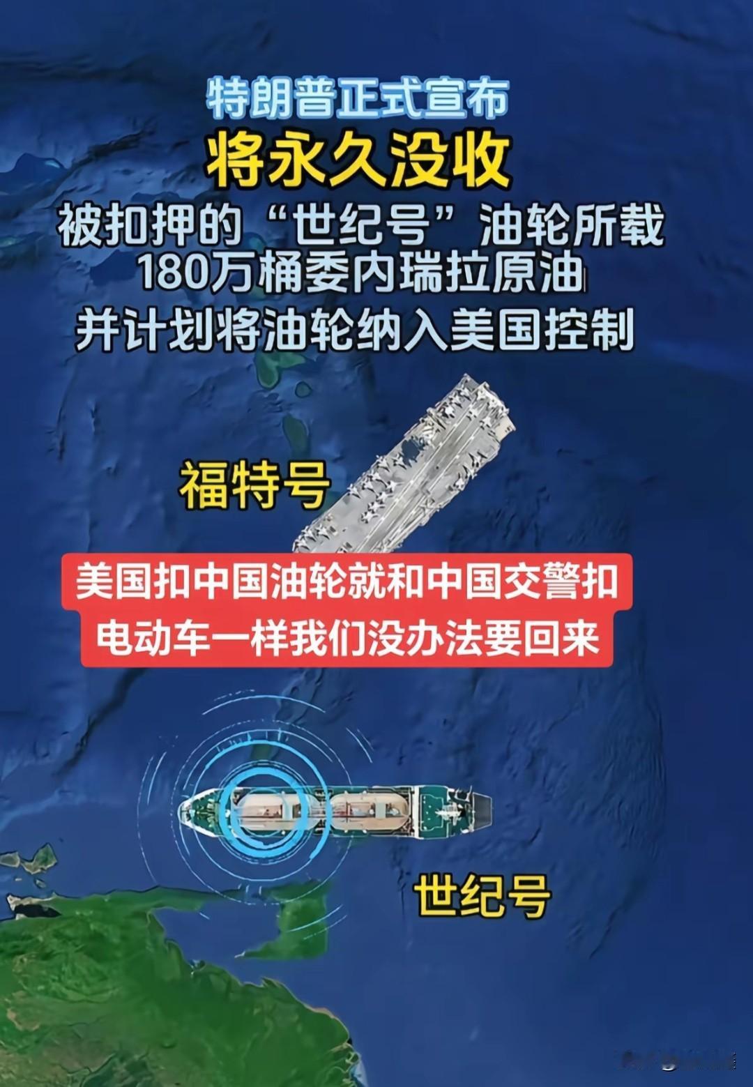 特朗普正式宣布,将永久没收被扣押的“世纪号”油轮所载180万桶委内瑞拉原油,并计划将油轮纳入美国控制。这艘由中国香港公司运营的油轮,在加勒比海国际水域遭美国海岸警卫队强行登船扣押,而无论是船东还是运营方,均未被列入任何制裁名单。 美国此举看似是针对委内瑞拉的制裁升级,实则意在遏制中国能源安全与人民币国际化进程。广东揭阳炼化基地依赖这批重油,美方扣押直接损害中国企业权益。同时,中委石油交易多采用人民币结算,冲击了美元霸权。 国际社会对美方这种海盗行径反应强烈,联合国安理会已召开紧急会议。中国也明确表态反对“长臂管辖”,并采取了暂停中美能源项目等反制措施。美国的行为破坏了国际规则与贸易秩序,其霸权行径终将反噬自身。