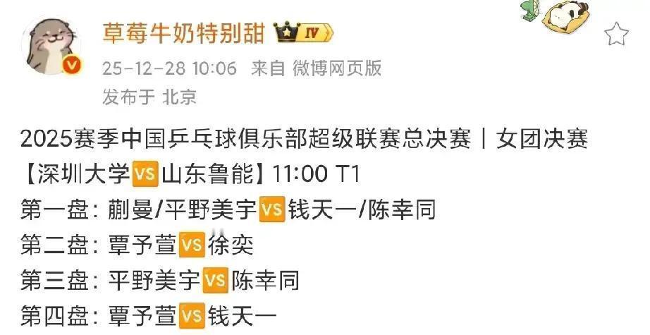 把世界第二的王曼昱摁在板凳上,才是山东鲁能输球的真正原因。 你以为王牌必须压阵?深圳大学的教练组下了一盘反逻辑的棋。他们押宝的不是个人排名,而是组合拳。 蒯曼和平野美宇的双打左手配,本赛季胜率逼近八成。这是第一记重锤,专打鲁能双打体系的衔接缝隙。覃予萱担任一单,拼的是冲击力,她近期对鲁能主力赢多输少。平野美宇蹲守三单,用她九成以上的外战决胜局稳心率,锁死最后一道门。 鲁能教练组留王曼昱做后手,等一个预期中的决赛盘。但深圳大学没让比赛拖到第五场。双打逆转撕开缺口,覃予萱爆冷打穿陈幸同,平野美宇在第三单打直接锁定胜局。王曼昱对平野的历史胜率,成了一张没机会打出的牌。 这场比赛之后,乒超的布阵逻辑彻底变了。顶级教练的博弈,从“比拼绝对实力”进入“拆解预期”的新阶段。他们用排名第三的阵容,撬动了排名第二的队伍。 复盘这场比赛,重要的或许不是你手里有什么牌,而是你敢不敢在关键时刻,拆掉对手预想中的所有剧本。