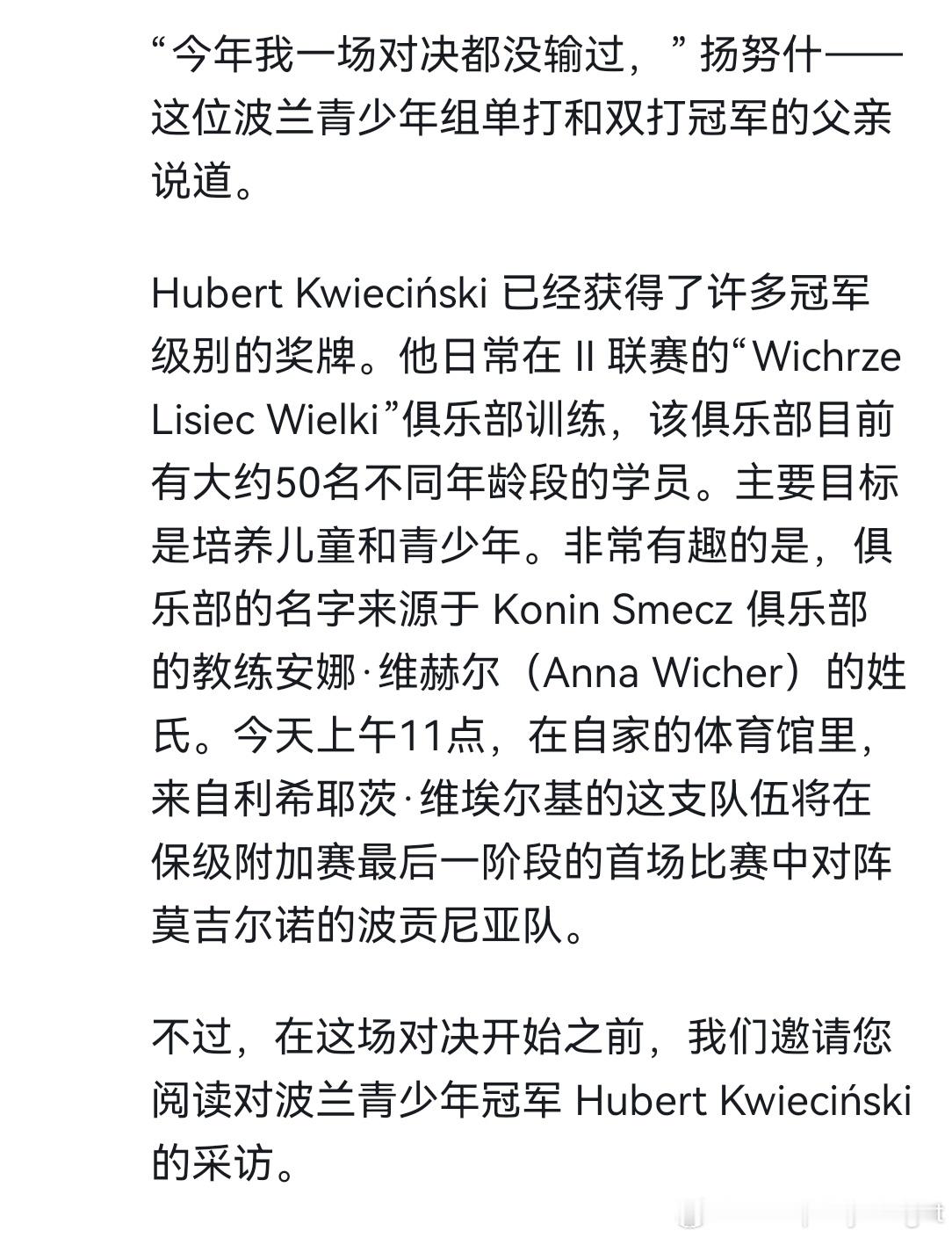 Hubert Kwieciński: “胜利源于刻苦训练”2024年5月19日的一篇采访