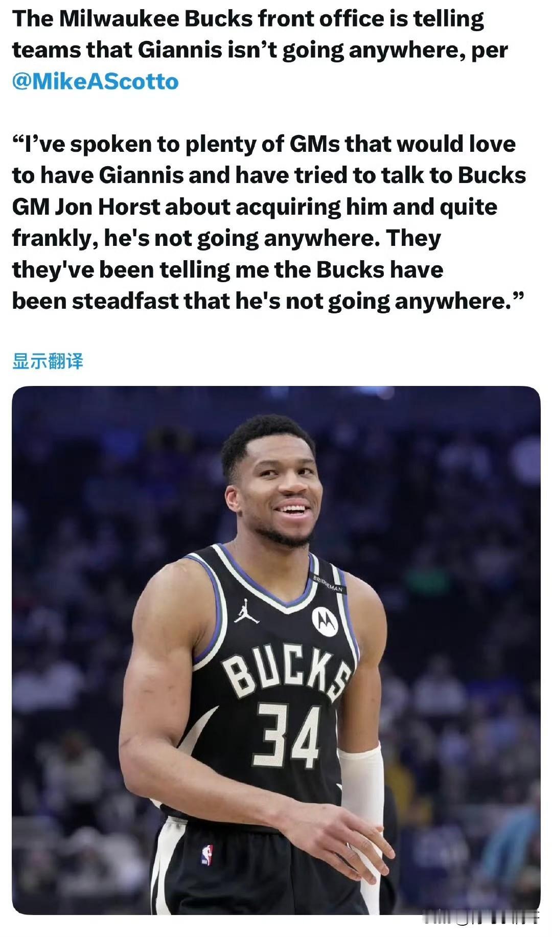 字母哥哪里都不会去!!!雄鹿态度坚决,不会交易字母哥! 根据记者Michael