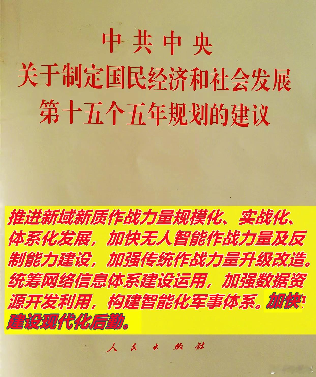 图1:看到昨天美军媒的这篇报道;图2:想到“十五五规划”建议中的相关内容。毕竟美军从专业角度对我军“大军改”后的一系列作战能力的提升还是很注意滴。不仅仅是“大妈军事”关注的那点儿枪长炮短。文中还引用了“兵马未动,粮草先行”、“外行谈战略、内行谈后勤”等经典句子呢。