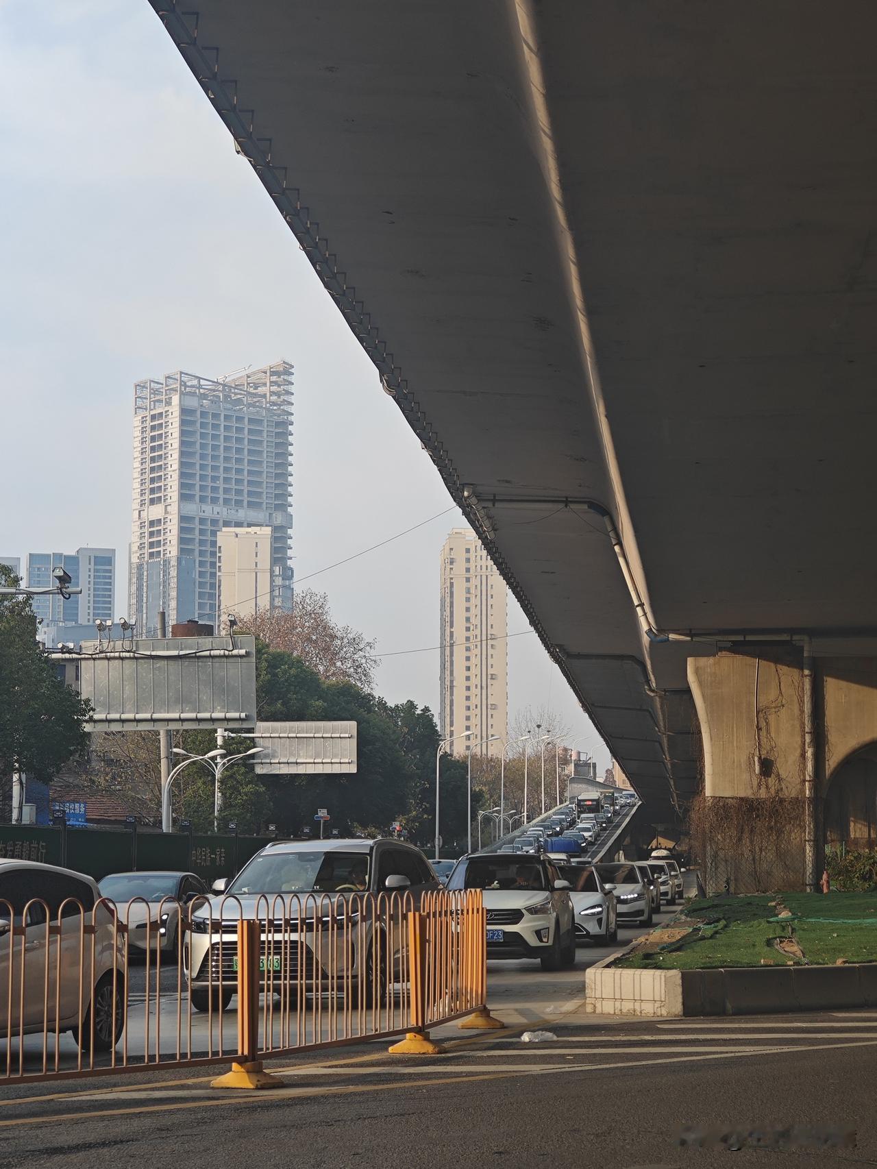 今天上午8点5分,通过鹦鹉洲长江大桥从汉阳赶往武昌的车辆络绎不绝,见头不见尾,一