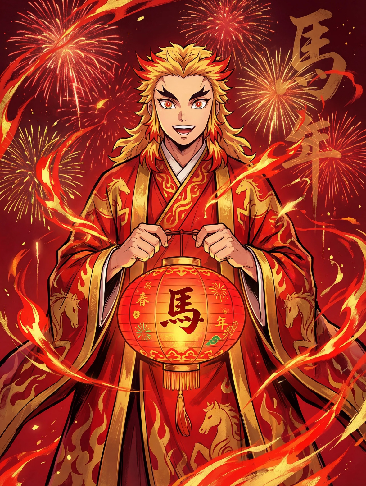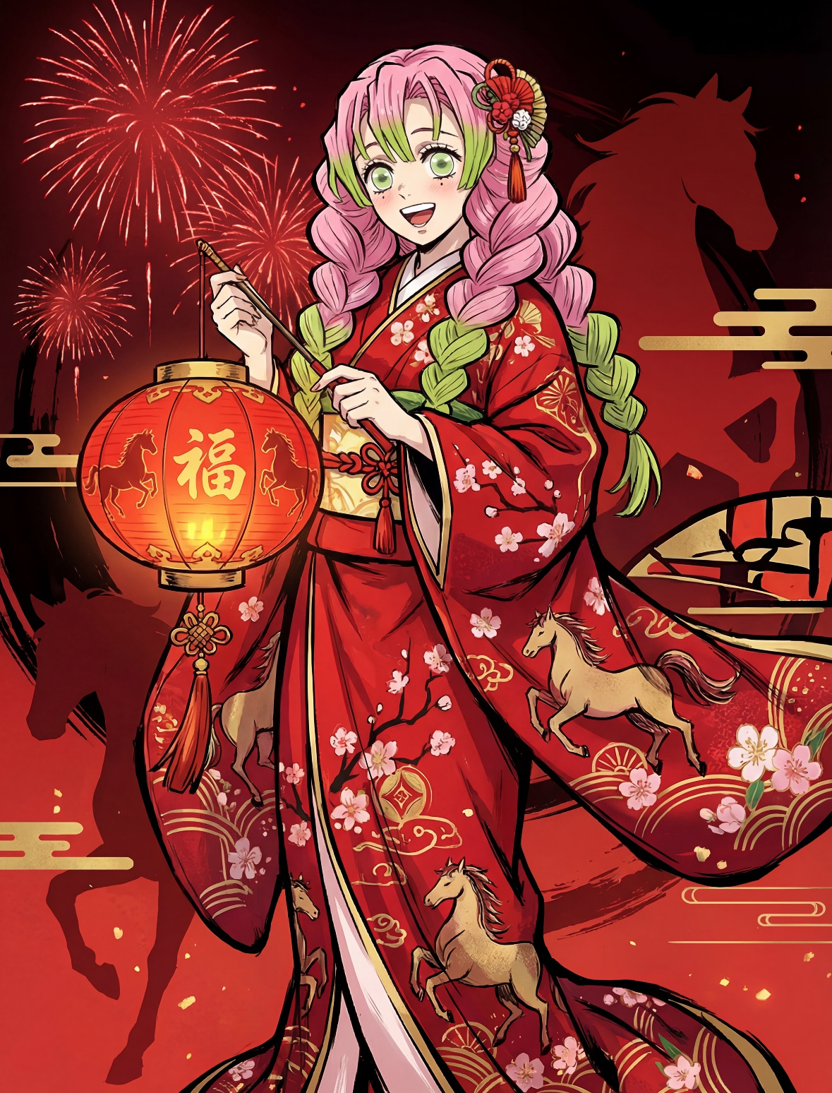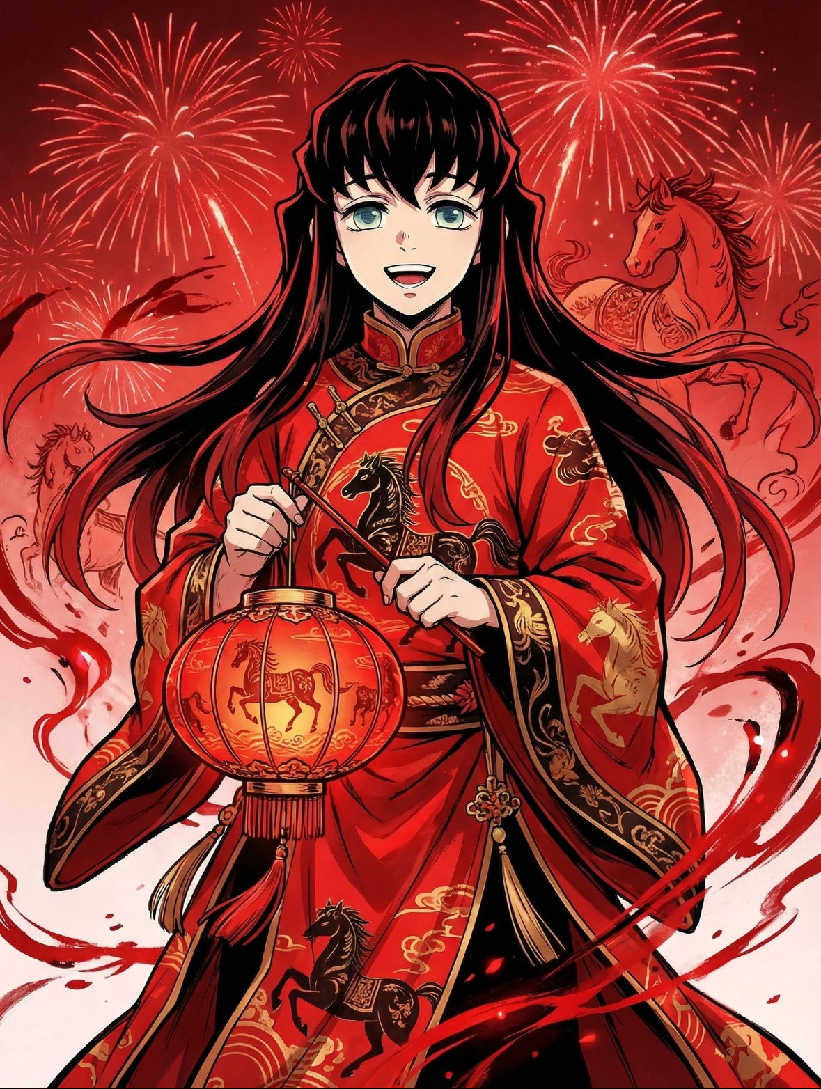 鬼灭之刃新年马年插画❤️好红火啊!2025动漫嘉年华动漫点评团海外动漫名场面鬼灭之刃