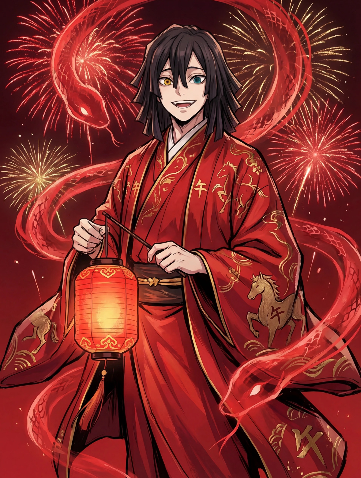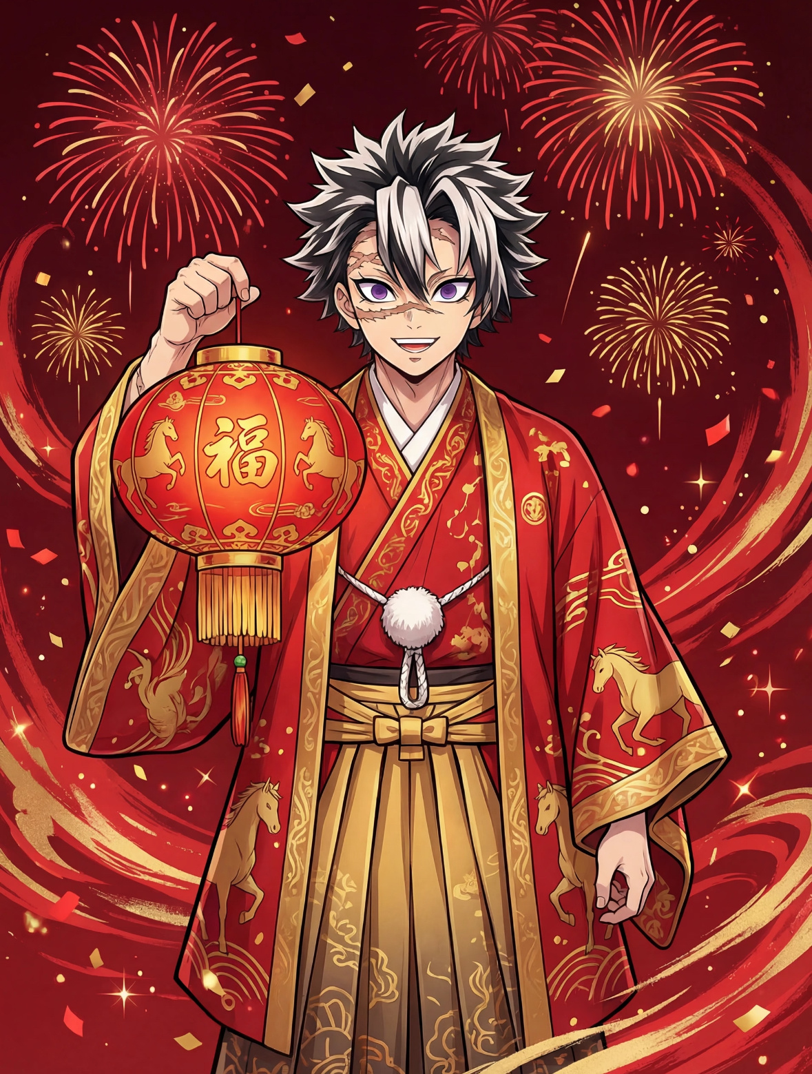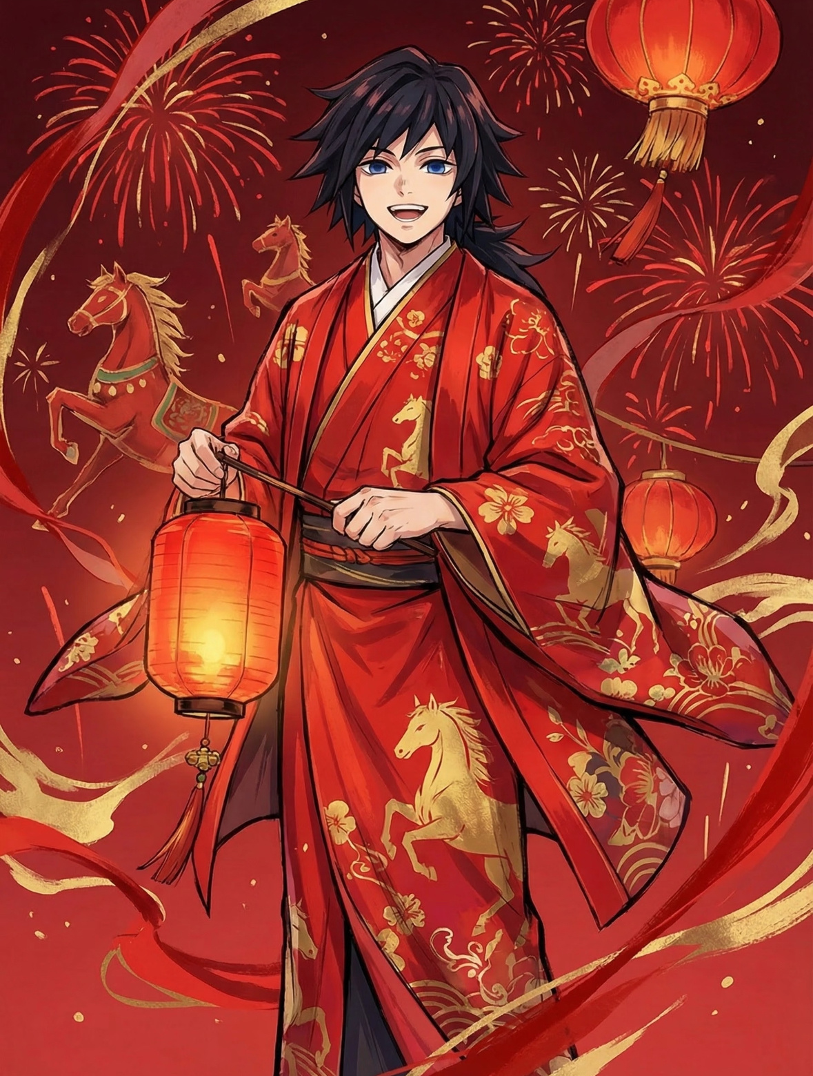 鬼灭之刃新年马年插画❤️好红火啊!2025动漫嘉年华动漫点评团海外动漫名场面鬼灭之刃