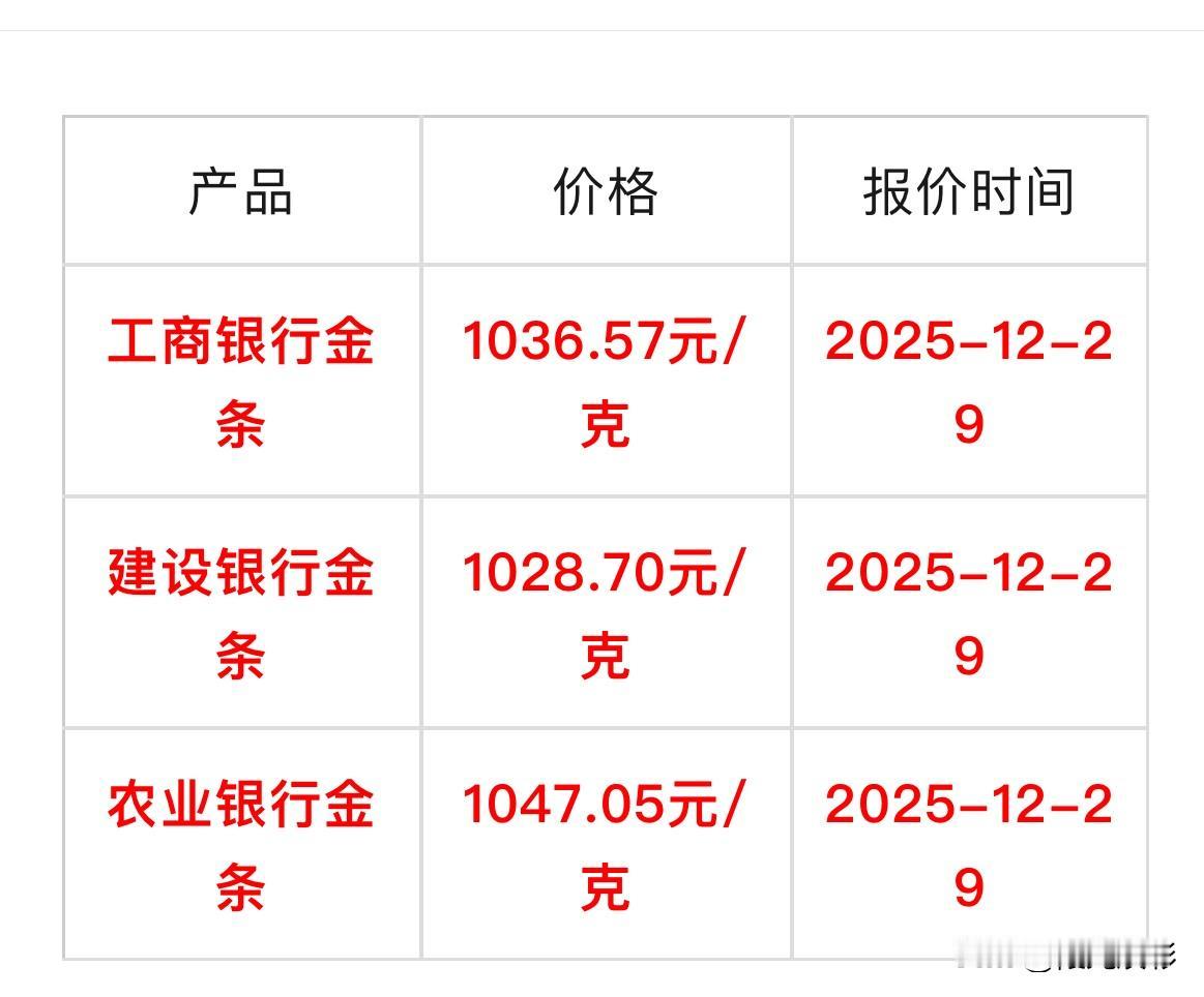 快来看看! 今天四大银行金条价格有没有再上涨了! 农业银行金条1047.05元/克, 工商银行金条1036.57元/克, 建设银行金条1028.70元/克, 邮政银行金条1027.00元/克。 同比于昨天,今天各大银行金条价格基本都没有上涨了,价格保持不变。 那么来说说,为什么选择银行金条。 1: 安全靠谱,银行全程可追溯,不怕跑路。 2: 纯度保重,自带国检证书+唯一编码。 3: 工费较低,银行金条比品牌和金店低。 所有信息,都只是提供参考价值! 购买黄金有风险,请大家保持理性购买黄金,不要盲目跟风! 投资金条金价 金条行情 银行金条 投资金条 银行金条价 银行实物金条 金条市场
