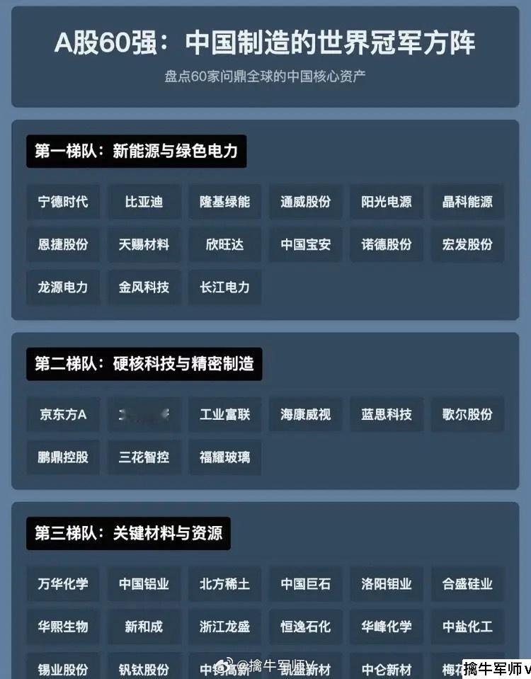 A股中国制造60强包括:川科技、江苏北人、埃斯顿、亿嘉和、拓斯达、博实股份、天奇股份、银轮股份、奥普光电、征和工业、恒帅股份、拓邦股份、旭升集团、肇民科技、超越膜股份、均胜电子、隆盛科技、美力科技、信捷电气、八方股份、能科科技、奋达科技、申昊科技、金沃股份、迈赫股份、爱柯迪、利亚德。