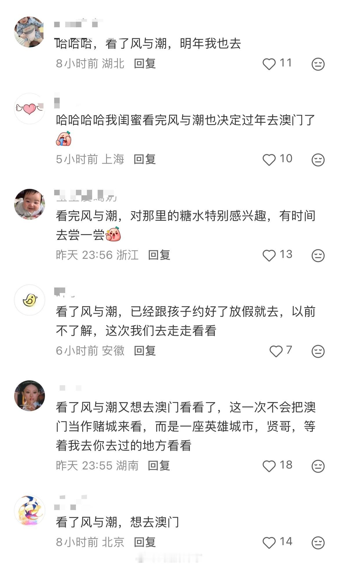 任嘉伦《风与潮》真的给给澳门文旅带来了巨大贡献!很多人因为看了《风与潮》改变了对澳门一直以来只有赌场的观念,已经去了或者准备去看看有澳门王何贤的这座英雄城市! 任嘉伦又凭一部剧带火一座城!