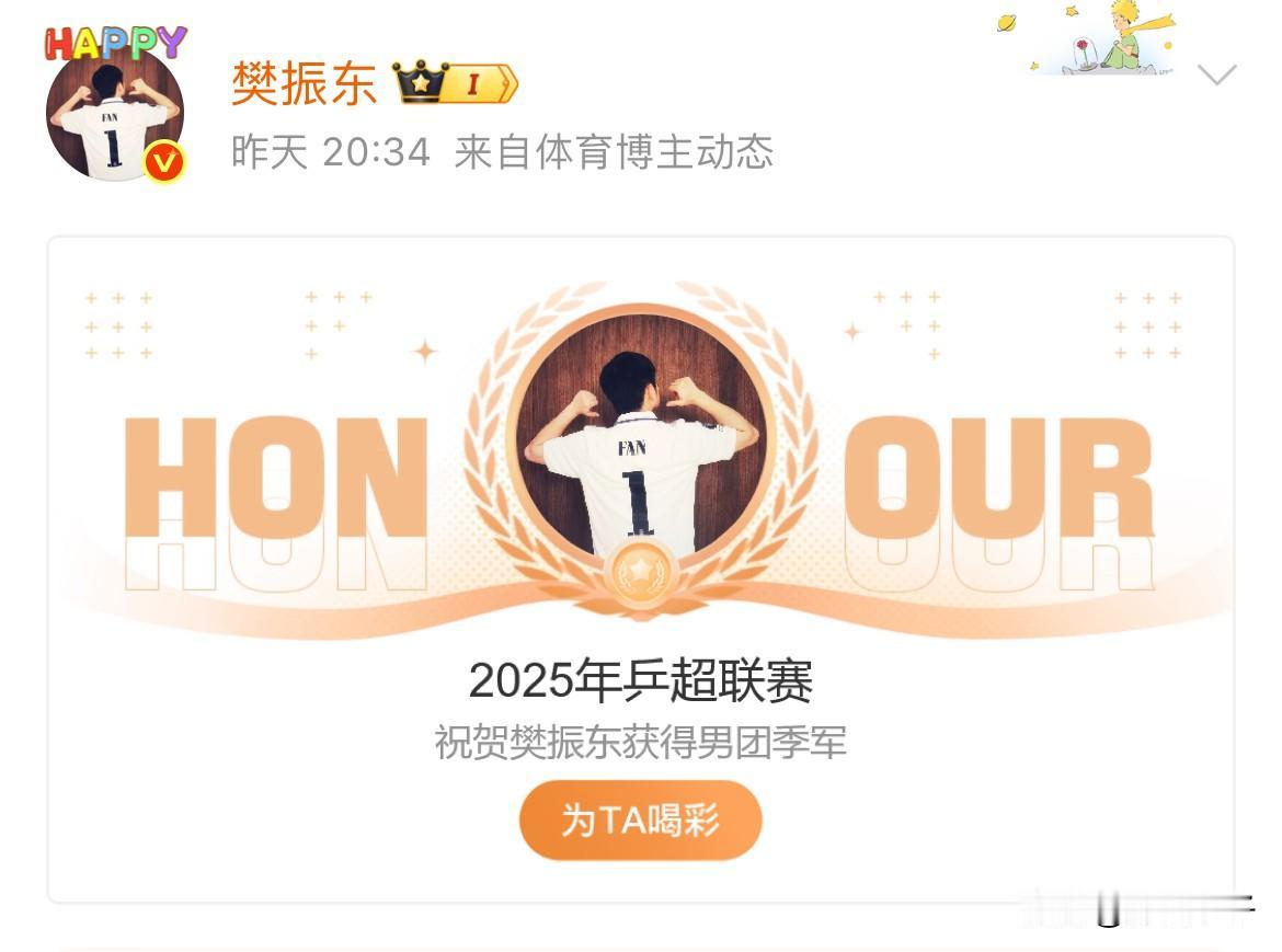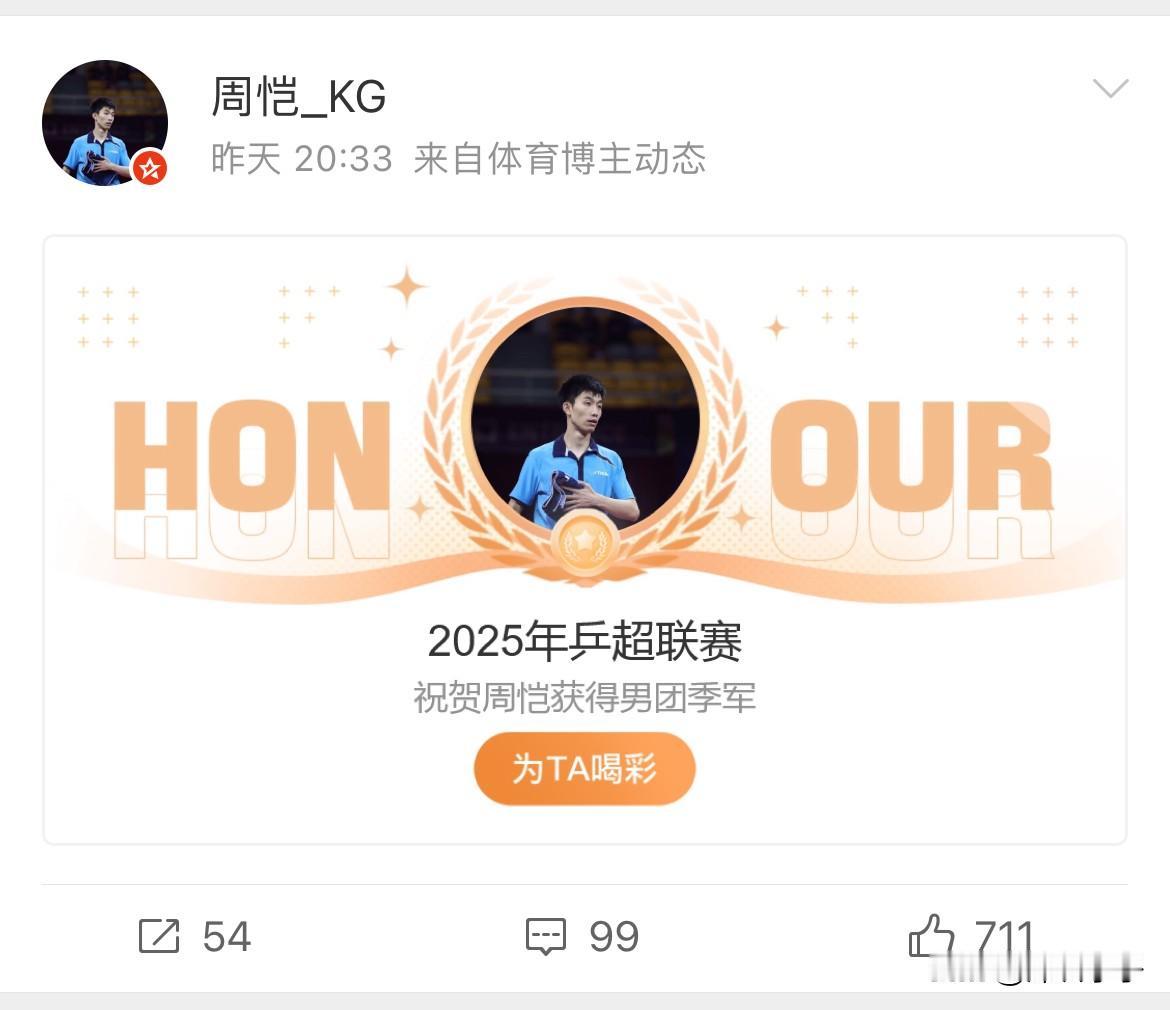 今天发现许昕的微博删掉了平台推送的铜牌徽章。许昕是觉得乒超联赛这个季军太丢人呢还是自己不配拥有这个季军呢?还是要切割自己和上海队的关系,把自己剔除出去? 这个举动确实让人费解!许昕是心里有气吗? 再看看樊振东、赵子豪、周恺等人的微博这条推送还在。 之前听许昕在他自己的直播间里说马上要上任新的官职,现在过了一个多月了,怎么没有声音了?有人知道是新上任了什么官职吗? 许昕 樊振东 赵子豪 周恺 上海
