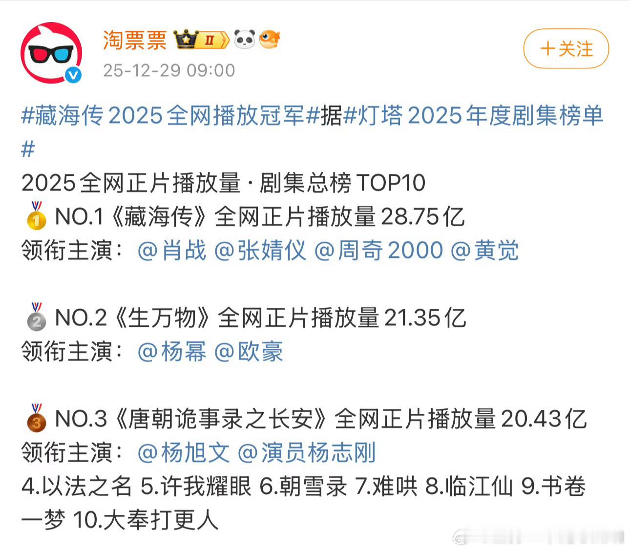 灯塔认证肖战《藏海传》冠军🏆*7,2025剧王实至名归!