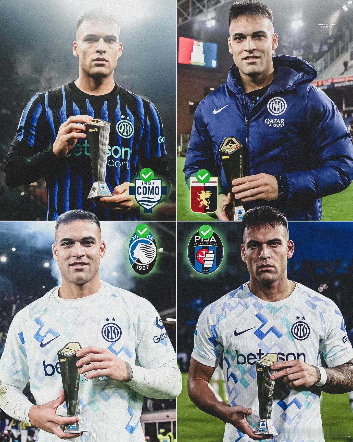 劳塔罗连续4轮进球,连续4轮拿到MVP,4轮制造6粒进球。国际米兰劳塔罗意甲