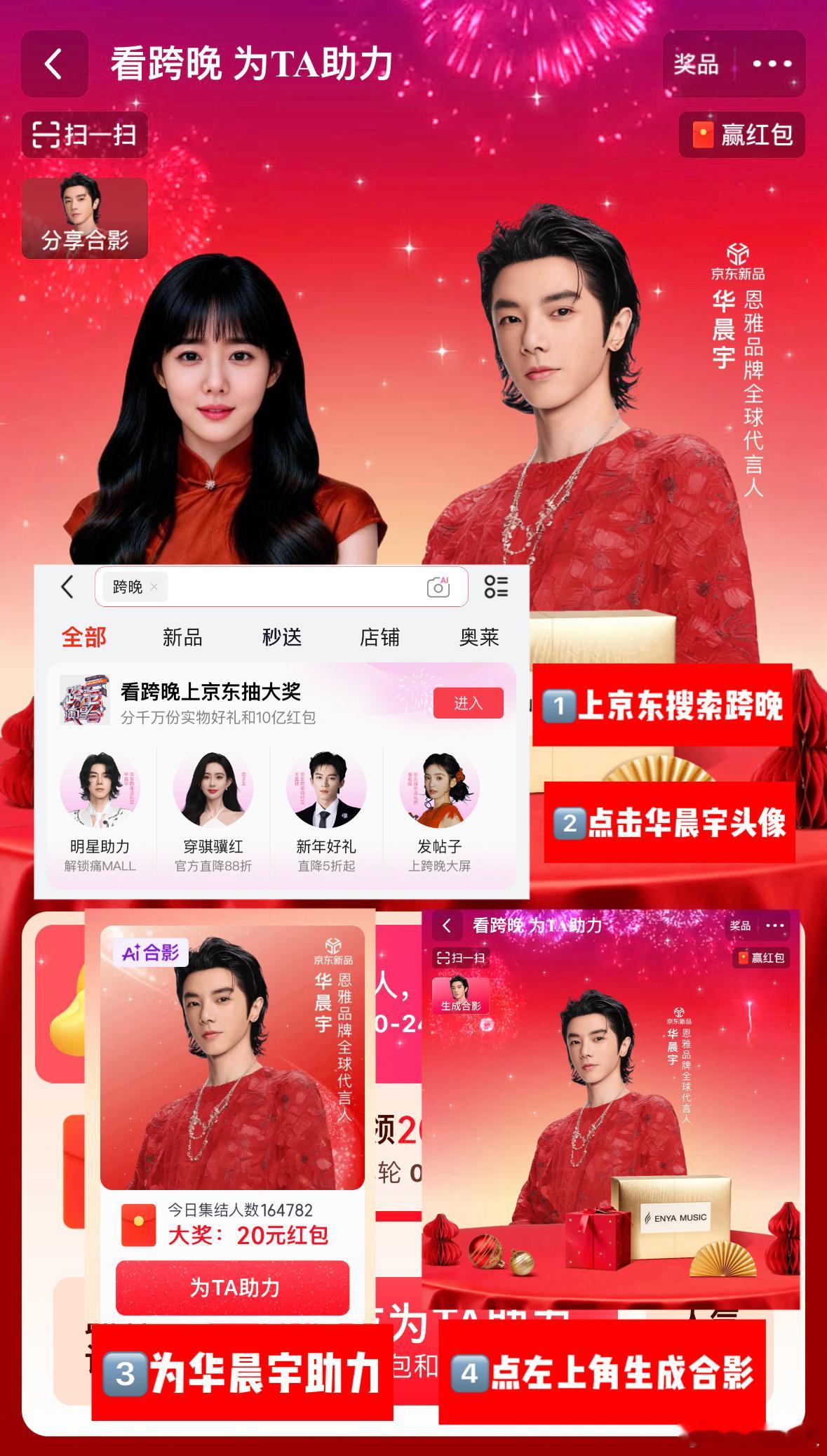 也是跟华晨宇有合照的人了 哈哈哈也是和花花合影上啦!刚发现京东居然可以一键生成和花花的专属合影,还是红红火火的新年主题,氛围感直接拉满~京东也太懂我们追星人了吧!之前就被西安的火星痛楼震撼了,接下来又可以看到跨晚上的花花,我们ET真的超幸福的~华晨宇