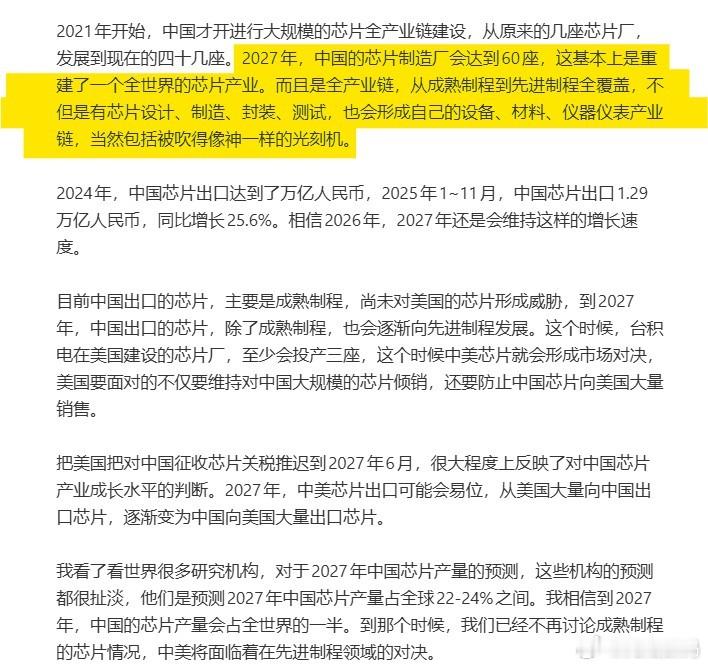 2027年,将拥有60家芯片工厂,这将会形成一个完整的芯片生态产业链。