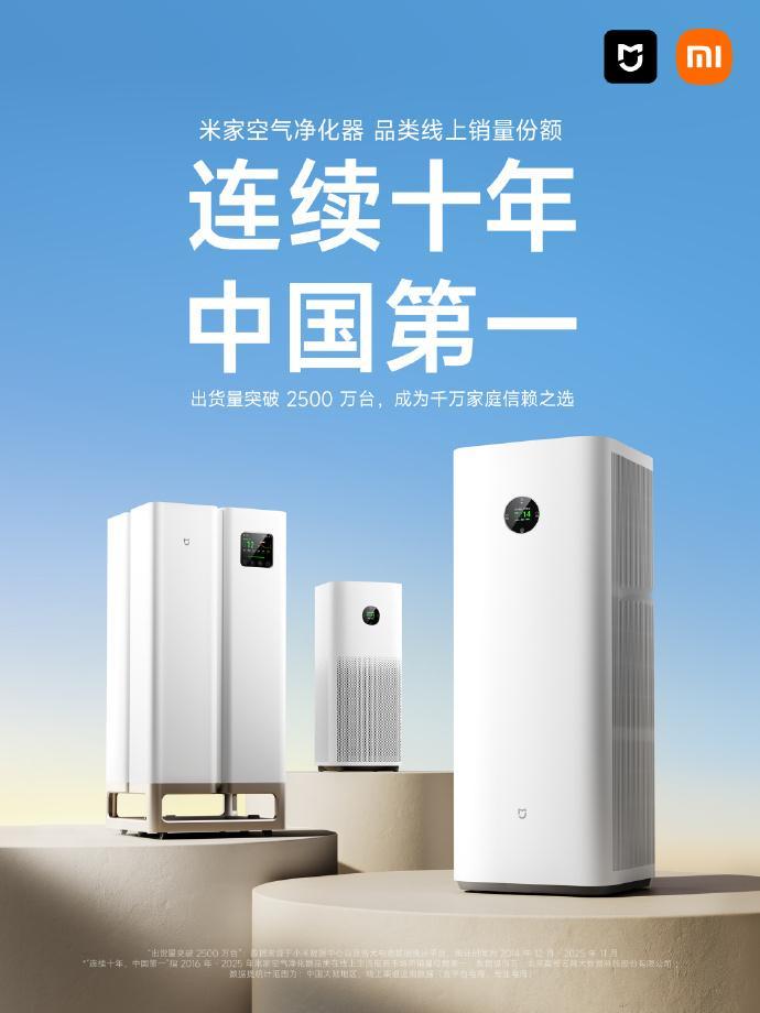 小米这么强吗?米家空气净化器线上销量连续十年中国第一米家空气净化器出货量已突破