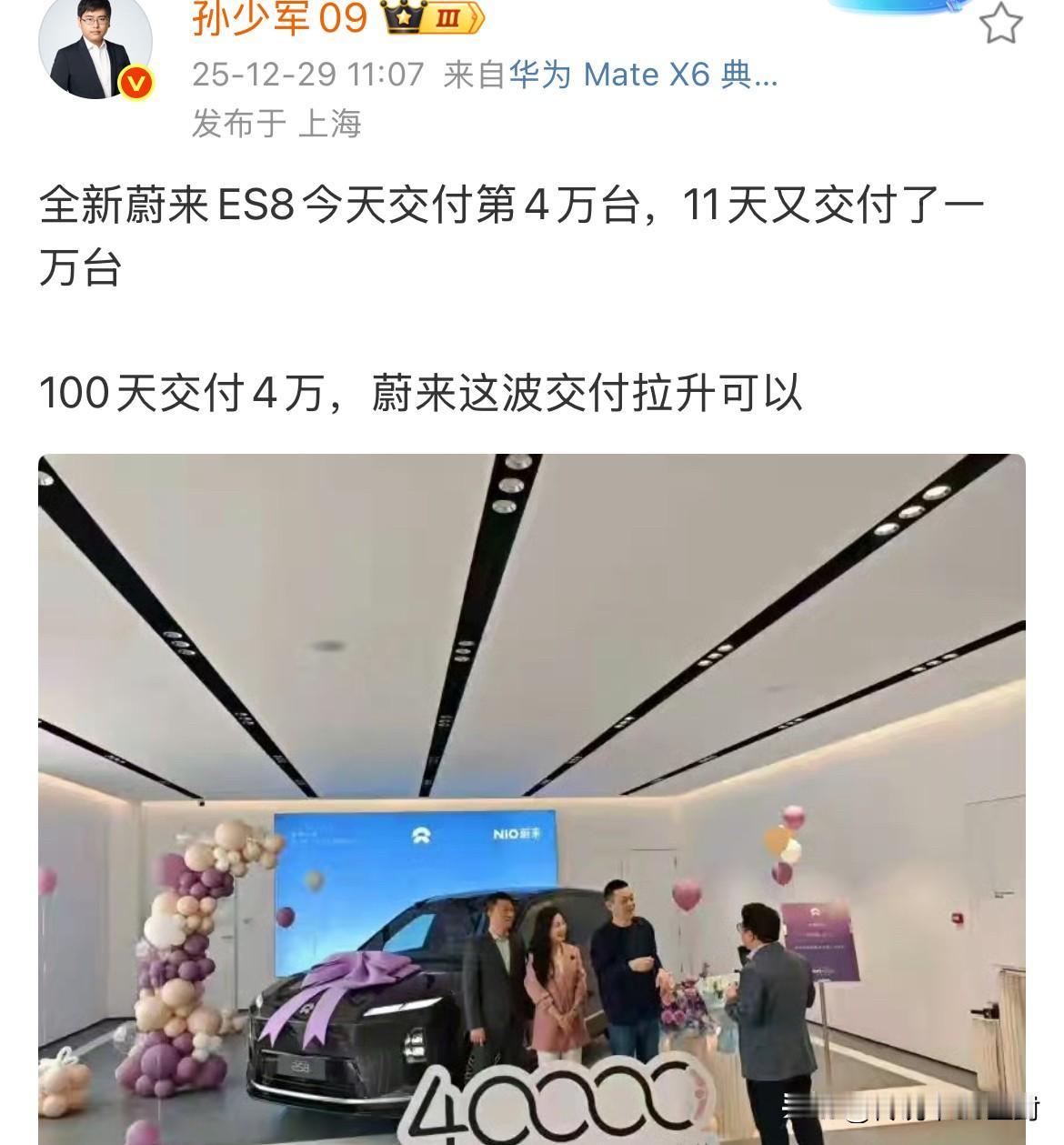 能把一个40+万的纯电SUV卖成走量款,蔚来真的是有点东西在的…… 全新ES8最近仅用11天就完成了10000辆的交付,算下来12月光ES8交付稳稳的破2万。 不仅是纯电、就是算上其他品牌的增程车型,ES8也妥妥的大三排SUV的销冠了。 这在几个月前,除了李斌,谁能想到? 李斌之前在乐道L60、L90都表达过类似单月两万的目标,但都miss了,如今反而在售价更高的蔚来ES8上成功达成。 真的是有点神奇色彩、有点魔幻的。 事实说明,蔚小理都不能被小瞧啊……