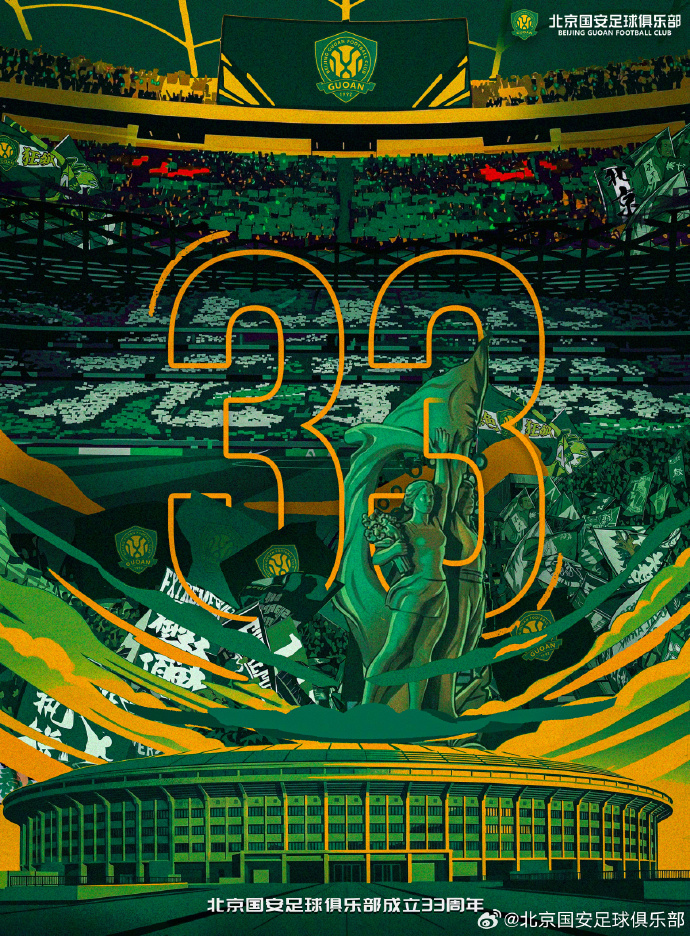 #北京国安成立33周年#北京国安足球俱乐部于1992年12月29日正式成立,今日迎来成立33周年纪念日。 今日发文:三十三载征程感谢一路相伴你我皆是国安同心并肩向前#看中超上咪咕#