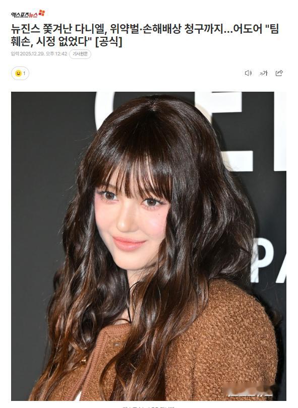 被赶出NewJeans的Danielle,被要求违约金、损失赔偿...ADOR“