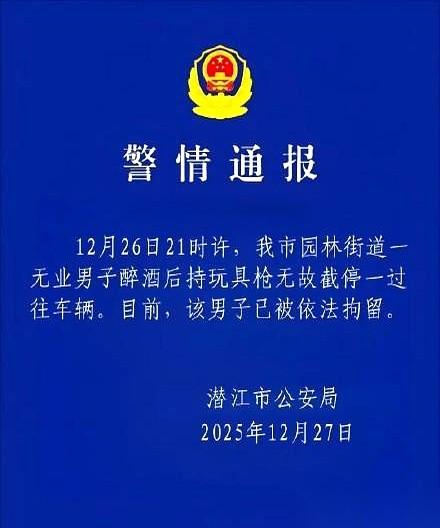 油门踩得好好的,突然,一个黑影晃出来,手里还给你比划个“枪”。 换你你慌不慌?心跳估计直接飙到180,方向盘都得攥出汗来。 谁知道下一秒,剧情急转直下。大哥喝大了,手里拿的是个玩具枪。 你说这人图啥呢? 湖北潜江,一个没工作的哥们,估计是心里堵得慌,灌了几两猫尿,胆儿就肥了,想在马路上找点存在感。 他以为自己是电影主角,能让世界为他暂停一秒。 想让飞驰的车、匆忙的人,都停下来看看他这个“人物”。 结果呢,世界没停,警车来了。 酒这玩意儿,真是个放大镜。 它不能给你什么,只会把你心底里藏着的那点憋屈、那点不甘、那点想掌控一切的幼稚幻想,通通给你照出来,再放大成一个滑稽的、公开的笑话。 现在酒醒了,在拘留所里,不知道他会不会后悔。 后悔用这么一种狼狈的方式,告诉全世界:你看,我过得有多失败。