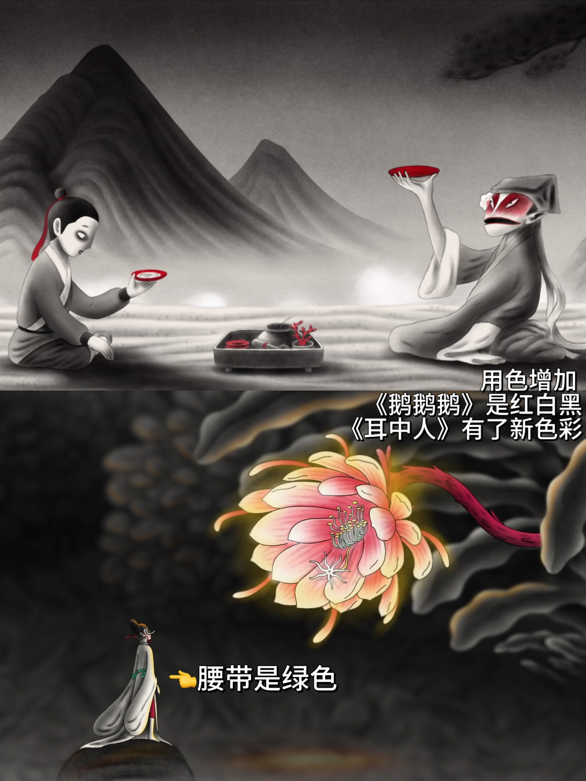 中国奇谭2终极预告信息量中国奇谭2奇境照进现实 从第一部《中国奇谭》一路追过来,看完《中国奇谭2》今天发的预告,感觉这一部也稳了!还是熟悉的中式美学韵味,《耳中人》里的角色这个标志性的黑眼圈出来我立刻梦回《鹅鹅鹅》,但这次似乎多了些色彩,很是惊喜。这一部既有老导演的作品,也有新导演的作品,每一部的画风都很喜欢。而且从预告来看,作品都比较观照现实,《小雪》里有闹腾的孩子与头疼的家长,可能讲的是亲情之间的碰撞吧,感觉金鱼是很重要的元素。《今日动物园》表演馆中,小熊尽管恐惧但还是咬着牙跳过火圈,是不是也有曲折的心路历程?其他短片的内容在预告里也有暗示,好喜欢这种以奇幻故事反应现实的作品,期待1月1日播出了!