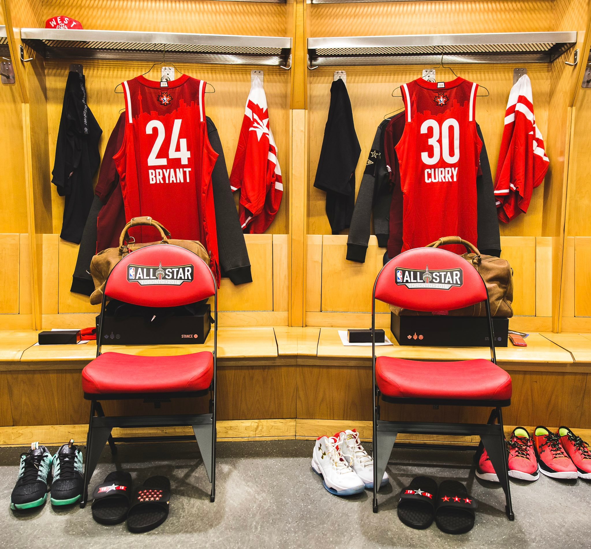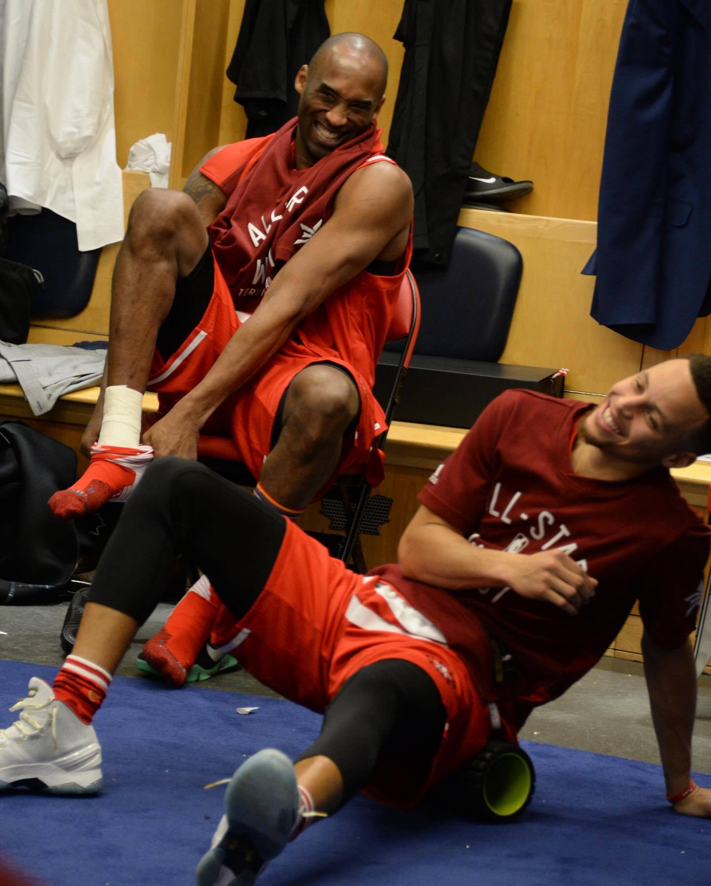 库里在多伦多的这波致敬绝了!在今天勇士客场对阵猛龙的比赛,库里先是向Drake送上了敬意,赛前穿搭上脚了Drake的NOCTA Glide,Drake手上有库里的文身然后在训练和比赛中上脚了科比最后一次全明星的战靴Kobe XI Elite Low "All-Star",这一届全明星就是在多伦多举行的,并且库里和科比在更衣室是挨着的今天这一波致敬可以说是非常让人触动了! 勇士vs猛龙金州勇士