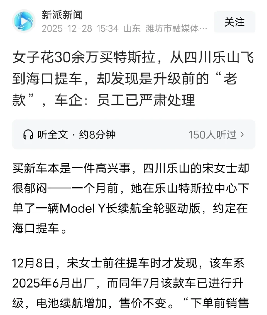 最终,4s店回应记者说,他们查过了,是宋女士自己嫌等期货车太慢,主动换成现车的,线下早就跟销售员商量好了。而合同里的“2025-02”就是个生产批次号,交的车和订单要求的完全对得上。