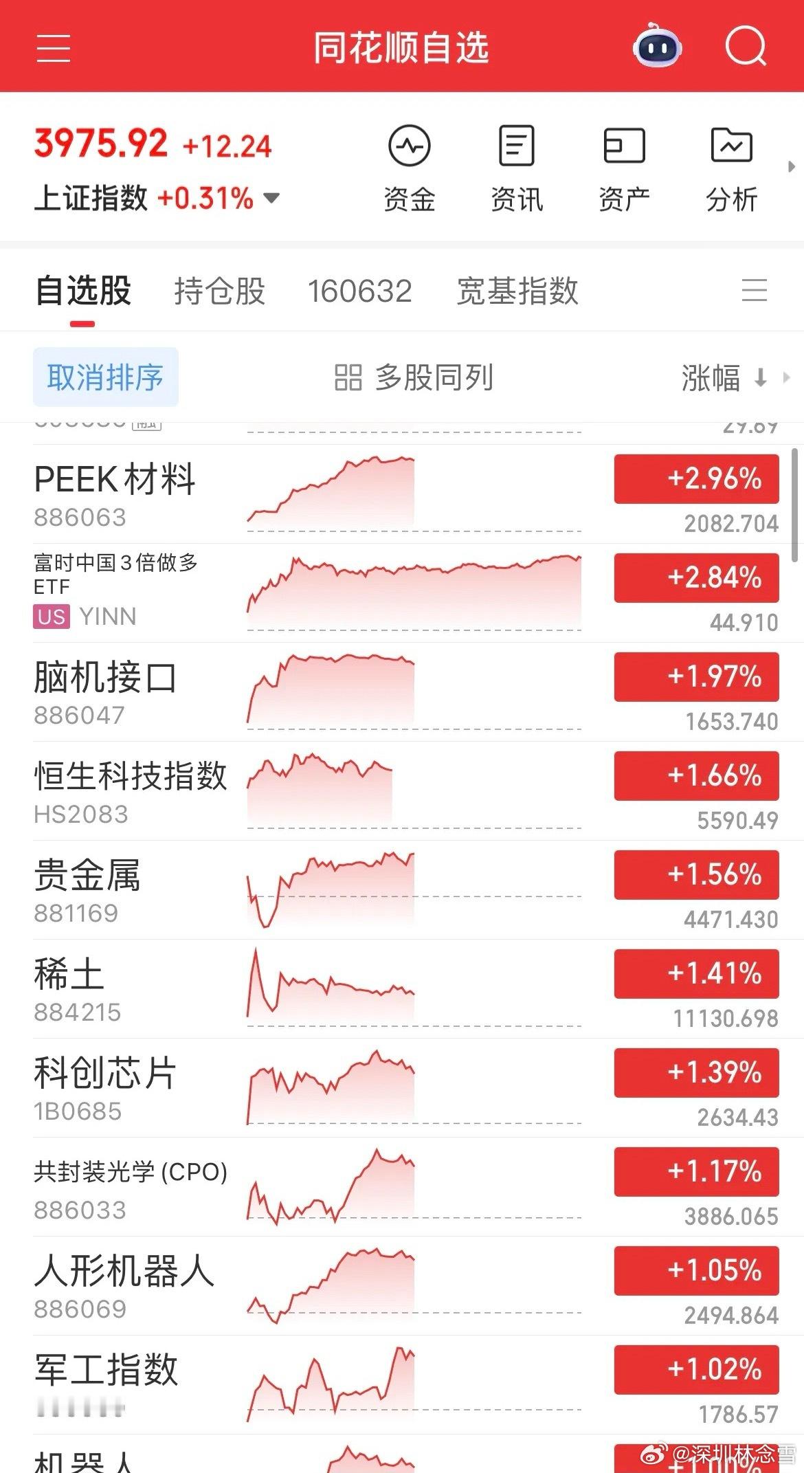 今日A股市场延续强势表现,沪指斩获九连阳,走出拒绝回调的逼空行情。机器人板块一飞冲天,龙头五洲涨停、永赢大涨超4%,成为场内最亮眼的焦点;半导体同步发力,科创50涨逾1%,CPO板块探底回升,走势契合预期。商业航天主线强者恒强,发展涨停,卫星ETF连续四天大涨,整体热度居高不下。资金明确聚焦新质生产力方向,机器人、商航、半导体、CPO等赛道轮番领涨,市场呈现“东边不亮西边亮”的轮动补涨格局。与之形成鲜明对比的是,港股创新药、白酒等板块持续低迷,凸显“选择大于努力”的当下市场逻辑。值得注意的是,上午两市成交量较上个交易日减少500多亿,伴随券商跳水、创业板冲高回落,市场情绪出现明显降温,指数上攻动能有所衰减,内资更是净流出超400亿。当前市场虽整体向好,但已暗藏调整风险,操作上不宜过度激进,需紧盯商航、半导体、CPO等核心主线的稳定表现,以此把握后续行情脉络。港股今日同步回暖,恒生科技大涨近2%,迎来节后补涨行情。
