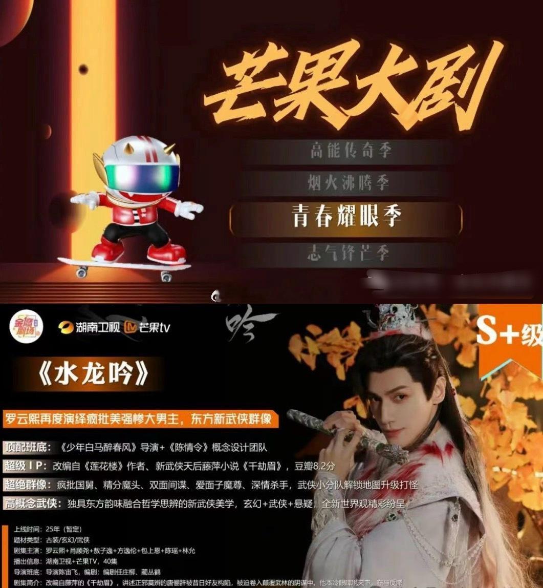 剥茧招商肯定不能和水龙吟比,水龙吟是芒果青春系列的头部大剧,平台重视程度不一样,而且剥茧是突然提档的