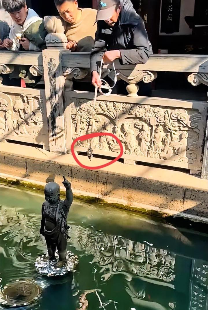 大爷啥钱都敢要 许愿池的硬币不放过 网友在南通某景点许愿池发现一位“牛人”大爷,他用绳子绑了一块磁铁,扔到许愿池里吸满了硬币,然后拉上来装口袋里就走了。 这一操作看懵了在场的游客,头一次看到有人这样占便宜的,一看大爷也是有备而来,整个动作从容不迫。 这种钱花着不烫手吗?哪怕捡点废品卖钱,至少也花的心安理得,大家许愿的钱也拿,这大爷真是一点不让人省心。