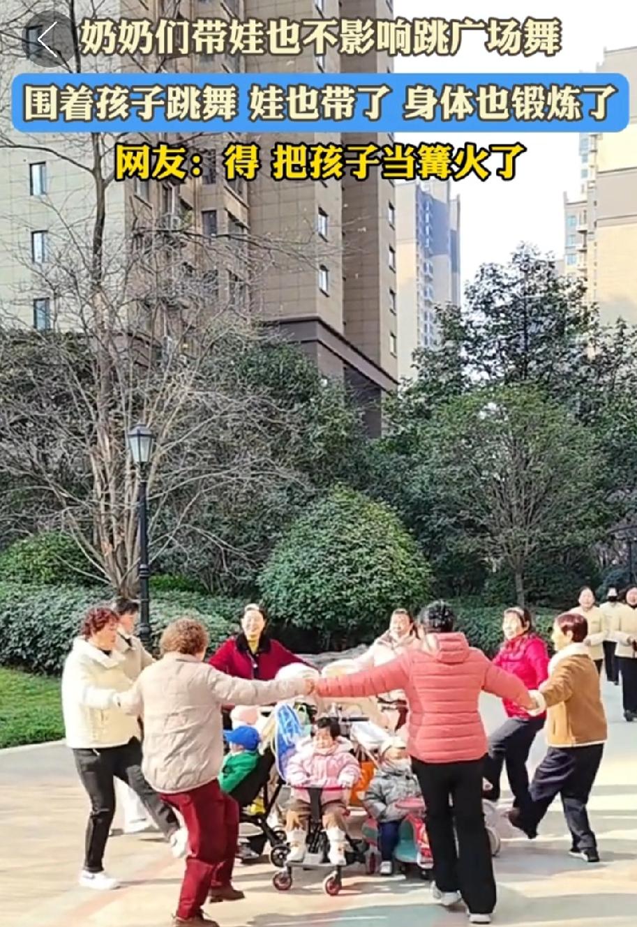 这个好!奶奶们带娃新方式,手牵手圈成一个圈,围着孩子们跳舞,真是温馨又充满创意! 奶奶们围成圈拉着孩子的手一起随着音乐摇摆或轻跳,简单又安全,孩子们在旋转和观赏中音乐得到启蒙,同时感受到浓浓的亲情互动;奶奶们也能在轻松氛围中活动关节、增强心肺功能。 将陪伴和锻炼巧妙结合,这种方式不仅让孩子们在欢声笑语中得到看护,还能让奶奶们活动筋骨、锻炼身体,真是一举两得!更重要的是,孩子在中间,保障孩子的安全性,不用担心孩子会丢。 这种方法简单易行,不需要复杂道具,适合在小区空地、公园或自家小院进行,关键是通过游戏化互动让带娃变得更轻松有趣。 这种方式还能促进家庭和谐,奶奶们享受运动乐趣,孩子们在安全环境中成长,真是一种智慧的带娃智慧!
