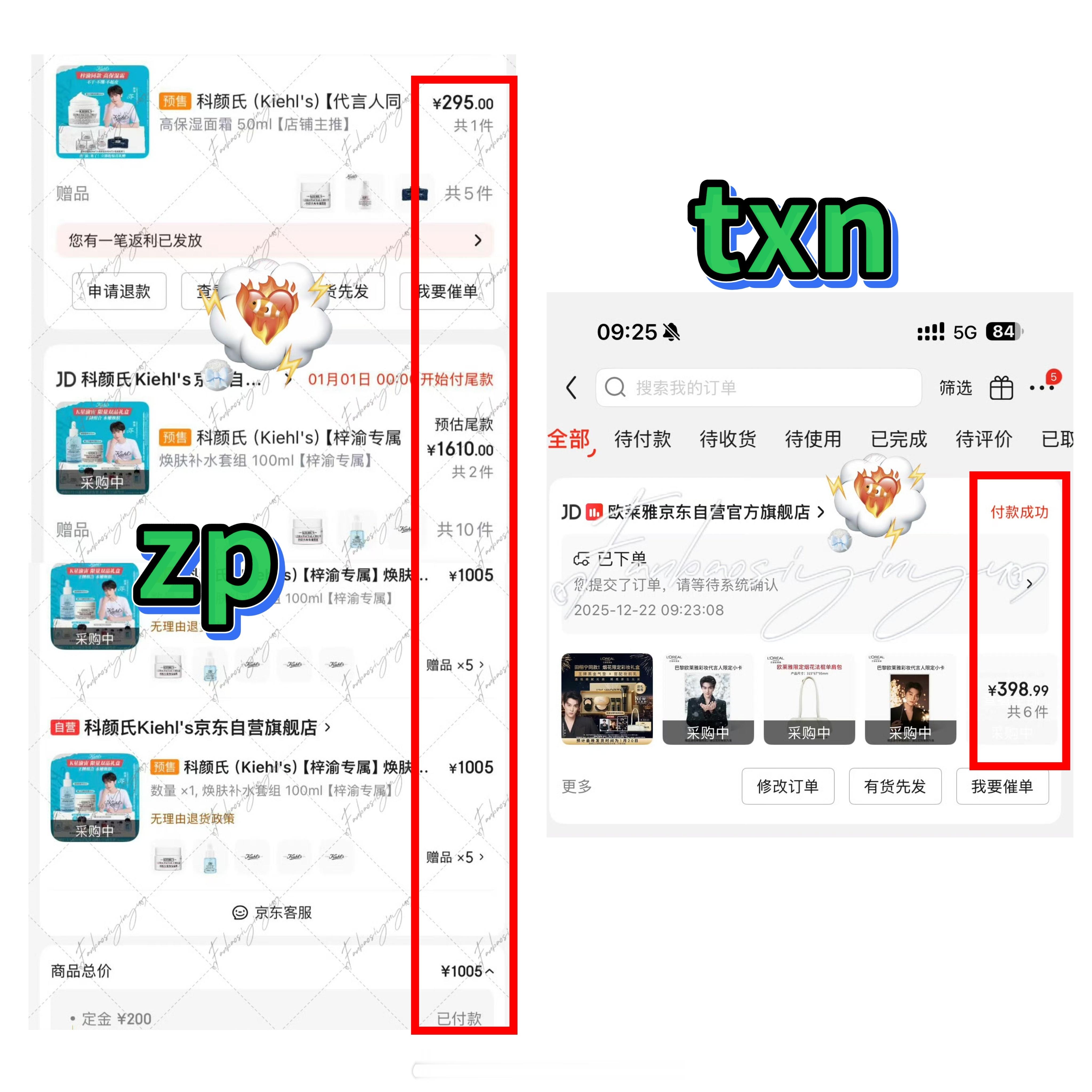 投稿的宝子说这个栩你渝生 站姐买了梓渝商务3900r,txn的只买了390,我说不一定,你再等等,他把txn这边的晒完单退了就是0了
