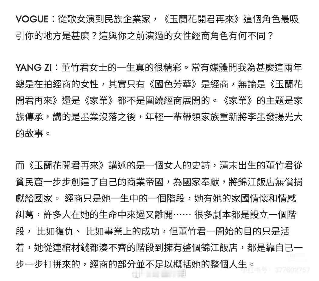 来看杨紫的新采访,事业规划清晰的一款扛剧花