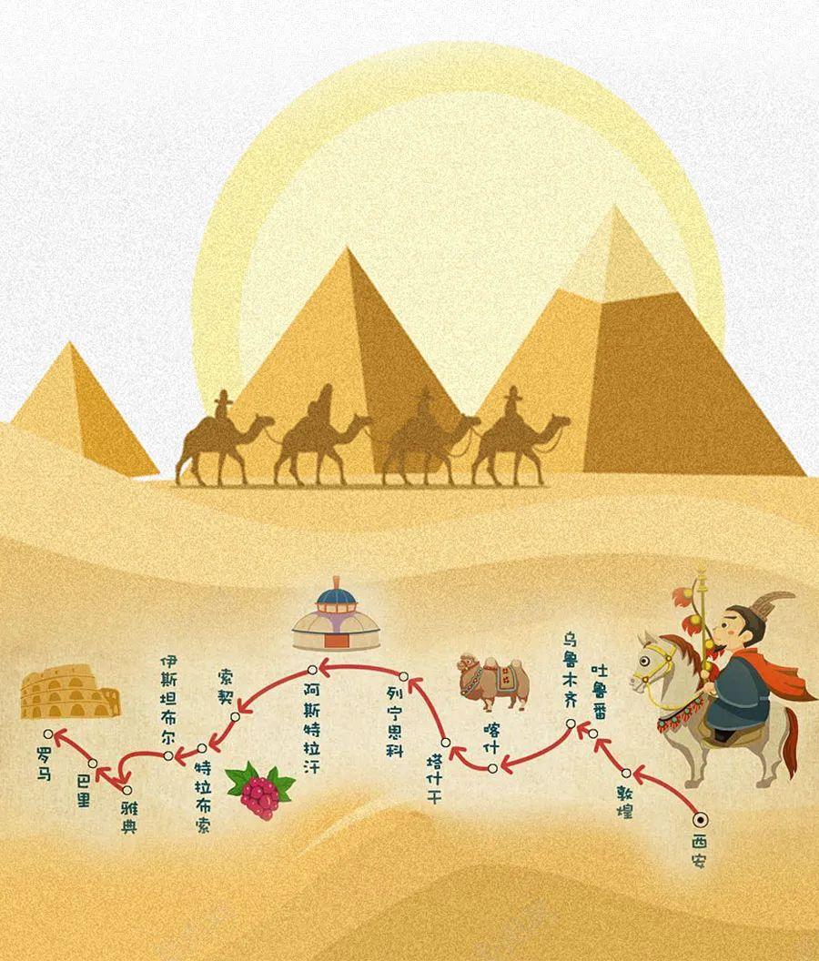 丝绸之路:跨越山海的文明纽带 在悠远的历史长河中,有一条古老而神奇的通道,它连接着东西方的文明,见证了人类交流与融合的辉煌篇章。它就是被誉为“丝绸之路”的伟大贸易与文化交流之路。这条路,不仅是一条商贸的通道,更是一条跨越山海、连接心灵的文明纽带。它用驼铃声声,载着华夏文明走向世界,书写出人类共同的辉煌。 丝绸之路的起点,可以追溯到汉代时期。那时,华夏大地上繁荣的文化和先进的技艺,开始通过这条路传向遥远的西方。丝绸、瓷器、茶叶、香料、宝石……这些珍贵的商品沿着驼队的足迹,穿越荒漠戈壁、翻越高山峻岭,抵达中亚、西亚,甚至远至欧洲。每一件商品背后,都是一段故事,一份文化的交流。 驼队的铃声在风中回荡,伴随着商人的谈笑声,成为那段历史中最动人的旋律。驼铃声声,不仅是贸易的象征,更是东西方人民心灵相通的象征。它们载着华夏的丝绸、瓷器,也带来了中原的文化、艺术和思想,逐渐融入到异域的土地上。 丝绸之路的意义远不止于物质的交流,更在于思想的碰撞与融合。佛教从印度传入中原,经过丝绸之路的传播,成为中华文化的重要组成部分。中亚的天文学、数学、医学,也随着商队的足迹,传入中国,丰富了华夏文明的内涵。与此同时,中国的造纸术、印刷术、火药等,也随着丝绸之路的拓展,走向世界,推动了人类文明的进步。 这条路上的交流不仅仅局限于商品和技术,更是文化、艺术、宗教的交流平台。敦煌莫高窟的壁画,便是东西方文化交融的见证。来自中原的佛教艺术,与波斯、希腊的艺术元素相融合,形成了独特的敦煌艺术风格。丝绸之路上的城市如长安、撒马尔罕、喀什等,成为东西方文化交汇的繁荣都市,吸引着来自四面八方的学者、商人和旅人。 随着时间的推移,丝绸之路逐渐演变,成为连接欧亚大陆的重要纽带。它不仅促进了经济的发展,也推动了不同文明之间的理解与合作。即使在现代,这条古老的路线依然具有重要意义。随着“一带一路”倡议的提出,丝绸之路的精神得以传承与发展,成为推动全球合作与发展的重要平台。 今天,驼铃声已成为历史的回响,但丝绸之路的精神依然在我们心中激荡。它告诉我们,文明的交流和融合,是人类共同进步的动力。跨越山海的这条路,见证了中华文明的博大精深,也彰显了中国作为文明古国的自信与担当。 未来,让我们继承丝绸之路的精神,携手共进,构建人类命运共同体。让那声声驼铃,成为连接过去与未来的桥梁,让文明的火花在更广阔的天地中绽放光彩。丝绸之路,不仅是一条古老的道路,更是一条通向未来的光明大道。 这,就是跨越山海的文明纽带——丝绸之路的故事。丝绸之路 丝绸之路古驿道