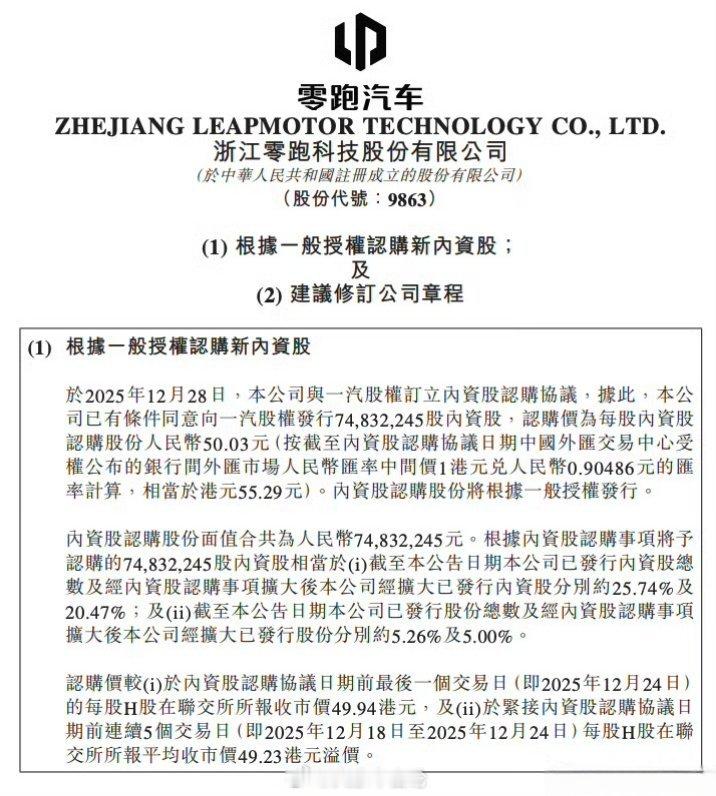 一汽和零跑正式签约,一汽股权将以内资股增发方式入股零跑汽车(约 5%)成为其战略股东。一汽集团旗下,旗新动力将与零跑汽车进一步共享资源,共同推动插电混动、增程等动力总成联合开发及生产协同。