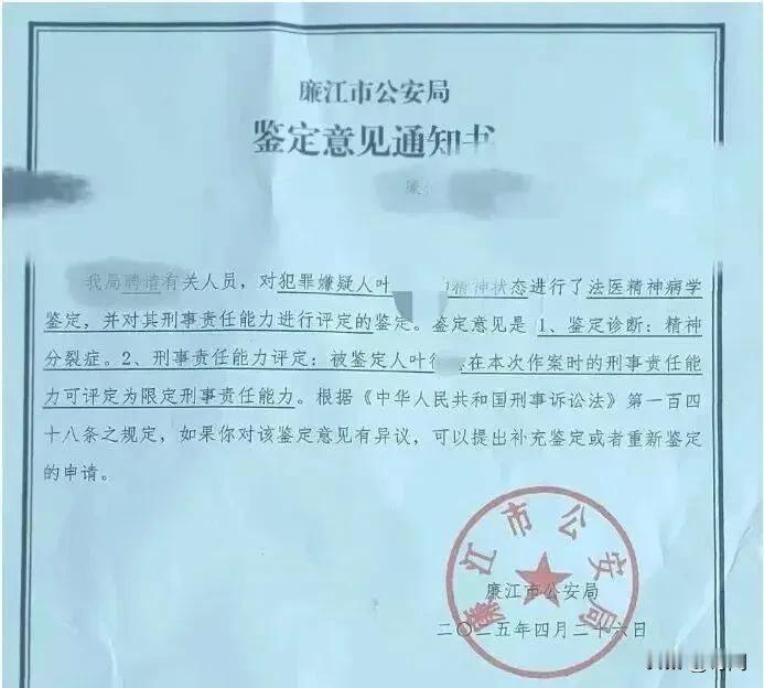国家还是有正常法院:一精神病发病砍死3人被判死刑,有鉴定报告也不行!2025年12月29日,广东省高级人民法院宣判,依法对罪犯叶德志故意杀人案二审公开宣判,驳回其上诉,维持死刑判决,并立即依法报请最高人民法院核准执行死刑。 案发时间2025年3月27日晚上,在广东省湛江市廉江市东涌村发生一起命案,犯罪嫌疑人叶德志因精神异常,猜疑被同村的叶某等人加害,遂产生杀人想法。其骑摩托车带两把菜刀在叶某家门口寻人,看到路过的陌生人韦某某、叶某花、何某某后,立马持菜刀砍击致3人死亡。 随后叶德志到派出所自首,一审时湛江市中级人民法院认为,叶某虽然有自首情节,而且经过鉴定确实属于精神病发病期间,属于限定责任条款,但是其作案手段残忍、后果极其严重、社会影响十分恶劣,依法判决死刑。叶德志随后上诉高级人民法院被依法驳回,维持死刑判决并上报最高人民法院。 网友称成都中院应该借鉴广东的法院判决,对于影响恶劣、手段残忍、危害人民群众的精神病罪犯,不能按部就班的判决死刑缓刑,这是对周边社会群众人身安全的严重危害。 精神病男子持刀砍死3人被判死刑 精神病犯病期间杀人被判死刑