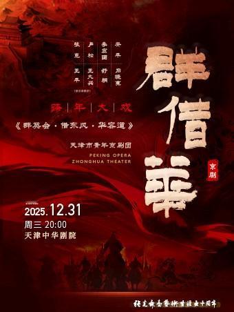 2026年1月3日晚,天津京剧院在天津中国大戏院,王平、张克、舒桐、奚中路、卢松主演京剧《定军山·阳平关》; 黄忠——王平 张克 曹操——舒桐 赵云——奚中路 严颜——卢松 2025年12月31日晚,天津市青年京剧团在天津中华剧院,王平、张克、李宏图、安平、卢松、石晓亮、舒桐、王大兴等演出跨年大戏京剧《群英会·借东风·华容道》; (按出场顺序) 黄 盖——安 平 甘 宁——唐春园 周 瑜——李宏图 鲁 肃——卢 松 诸葛亮——张 克 蒋 干——石晓亮 曹 操——舒 桐 阚 泽——霍双来 赵 云——王大兴 张 飞——韩云江 关 羽——王 平 关 平——司 鸣 周 仓——刘卫东 2026年1月16日晚,北京京剧院在北京市·吉祥大戏院,谭筱羽、刘烁宇、李钰吉祥等主演京剧《大保国·探皇陵·二进宫》; 2026年1月30日晚,北京京剧院在北京市·长安大戏院,裘识、王艳、王越、王瀛政、张超凡等演出京剧《大保国·探皇陵·二进宫》; 2026年2月18日晚,北京京剧院在北京市·吉祥大戏院,王怡、包飞主演京剧《穆柯寨·穆天王·大破天门阵》; 2026年2月20日下午,上海京剧院在上海天蟾逸夫舞台,陈麟主演《金翅大鹏》,唐元才、胡璇、李春等演出《遇皇后·打龙袍》; 2026年2月20日晚,北京京剧院在北京市·国家大剧院,演出京剧《群英会·借东风·华容道》; 2026年2月21日晚,北京京剧院在北京市·国家大剧院,演出京剧《千里走单骑》(封金挑袍·过关斩将); 2026年2月22日(初六)下午,北京京剧院在北京市·长安大戏院,裘识、 方旭、 于帅、 白智鑫等演出京剧《失街亭·空城计·斩马谡》; 2026年2月23日(初七)晚,北京京剧院在北京市·长安大戏院,谭正岩、张建峰、 李扬、 黄臣、 白智鑫等演出京剧《定军山·阳平关》; …… ……