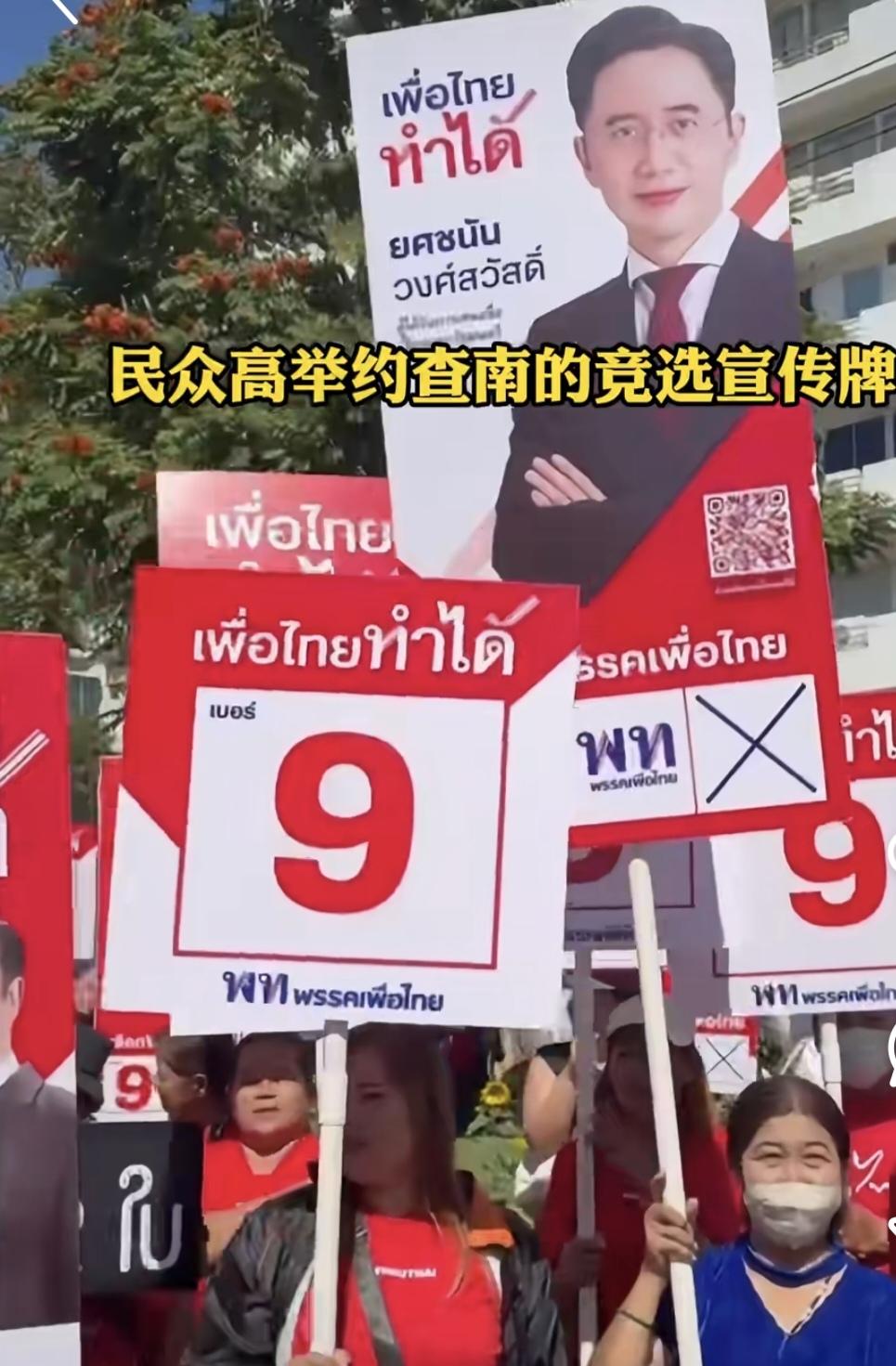 佩通坦身着为泰党统一服装,为三位总理候选人约查男,朱拉潘,索里亚加油打气! 佩通坦红色上衣一穿,白色打底衫,造型美观的耳环一戴,真是又美又飒呢。她内心充满对政治的热情!为候选人站队。 表兄约查男已深入到基层,宣传自己,宣传为泰党。他受到了民众的支持! 佩通坦所在的为泰党红红火火,预选活动如火如荼。佩通坦为真心希望为泰党再出一位总理。 人美,心眼又好使的佩通坦,未来一定是坦途!