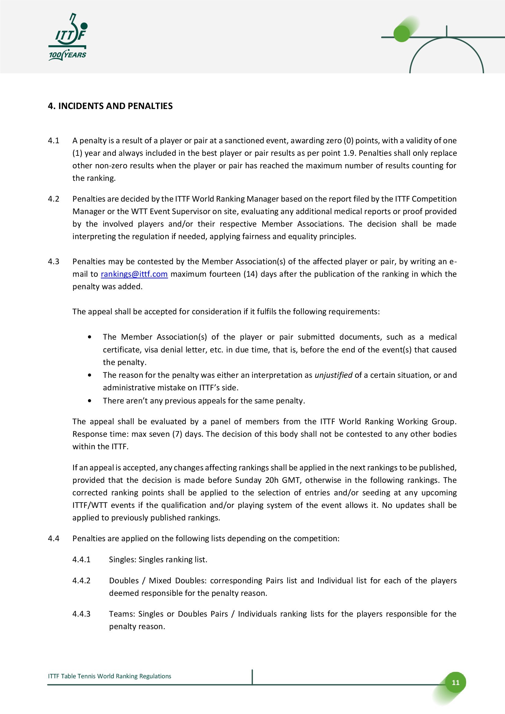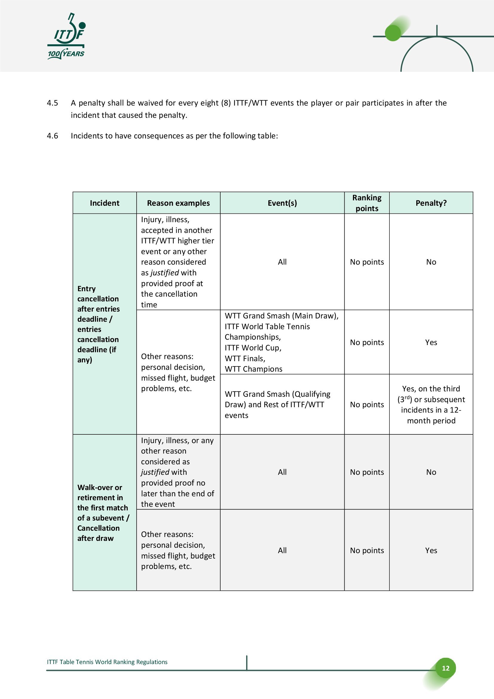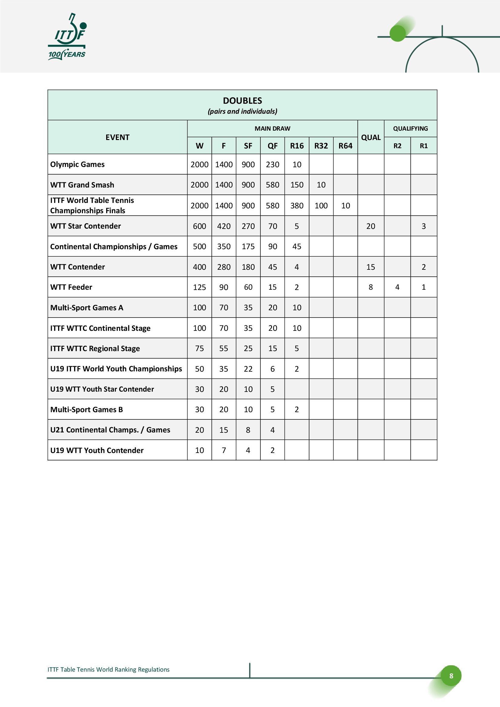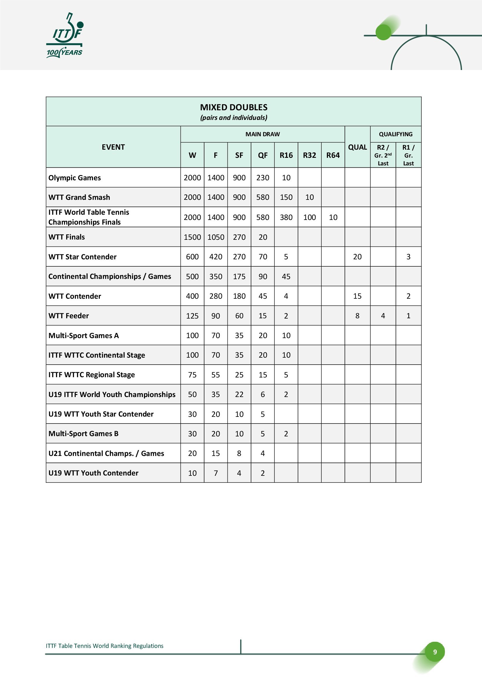 国际乒联世界排名规则丨2025.12.28更新🔘世界排名公布提前至周一🔘更新积分表,调整国际乒联/世界乒乓球职业联赛赛事每轮积分分配,其中中间轮次的积分减少幅度由每轮减少50%调整为减少65%,并对2026赛季WTT赛事的不同签位规模进行调整。📈2026部分赛事四强至第二轮积分变化示例,/后为原积分,↓为新积分减少【国际乒联单打世界杯】单打丨四强680/525丨八强450/265丨十六强300/130【WTT大满贯】单打丨四强900/700丨八强580/350丨十六强380/175丨三十二强100/90双打丨四强900/700丨八强580/350丨十六强150↓/175【WTT总决赛】单打丨四强680/525丨八强450/265混双丨四强270↓/525(*赛制变更)【WTT冠军赛】单打丨四强450/350丨八强300/175丨十六强80↓/90【WTT球星挑战赛】单打丨四强270/210丨八强175/105丨十六强115/55丨三十二强30/25双打丨四强270/210丨八强70↓/105【WTT常规挑战赛】单打丨四强180/140丨八强120/70丨十六强30/35↓双打丨四强180/140丨八强45↓/70🔘新增奥运会男女双打和混合团体积分🔘更新排名处罚决定和申诉流程,明确其步骤和时间表。更新将国际乒联世界乒乓球锦标赛和国际乒联世界杯列为在报名截止日期后取消参赛将直接受到处罚赛事;将抽签后取消参赛视为弃权;并区分三种不同后果的取消资格类型。